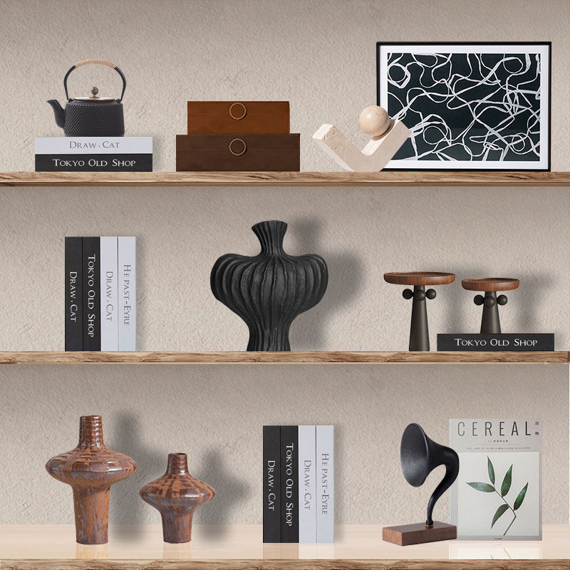 中古侘寂风酒店会所花瓶陈列摆设民宿开放格壁柜复古陶瓷艺术摆件