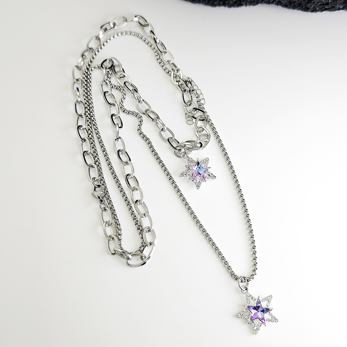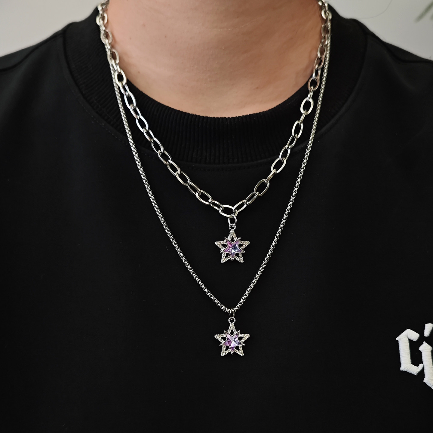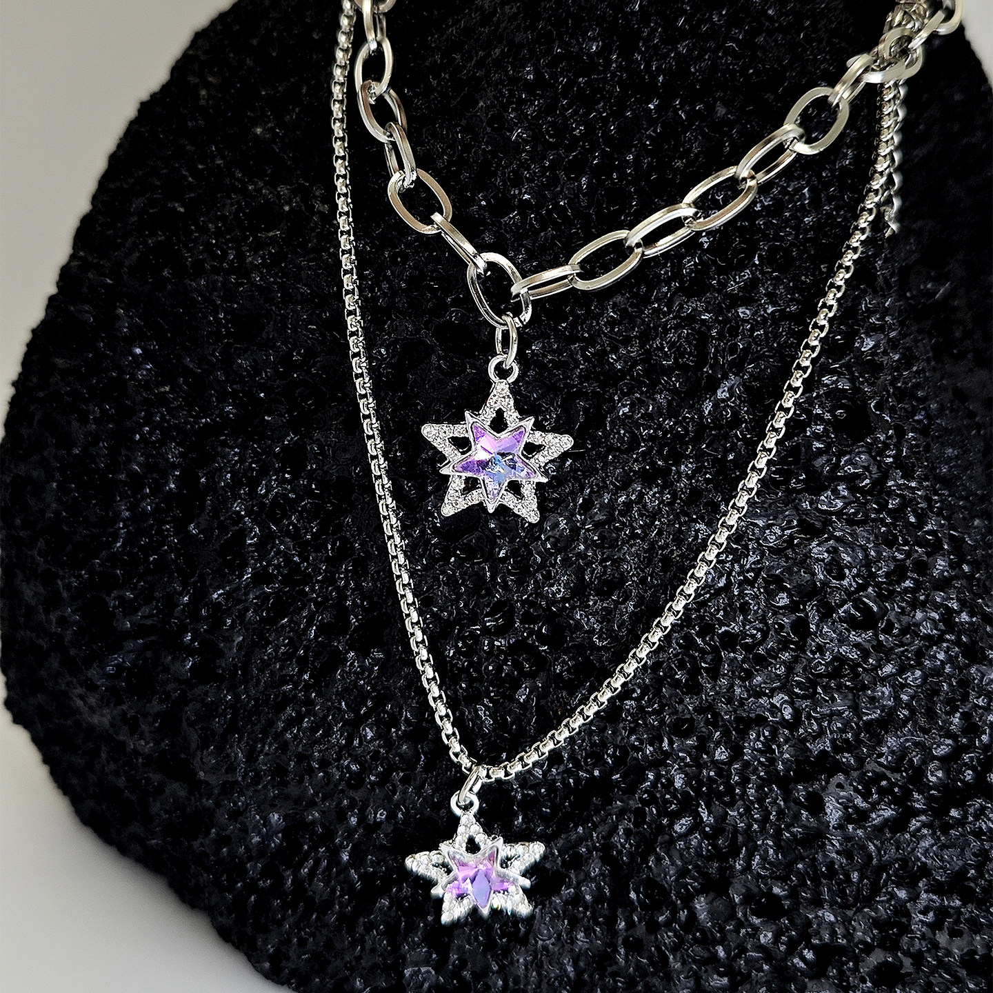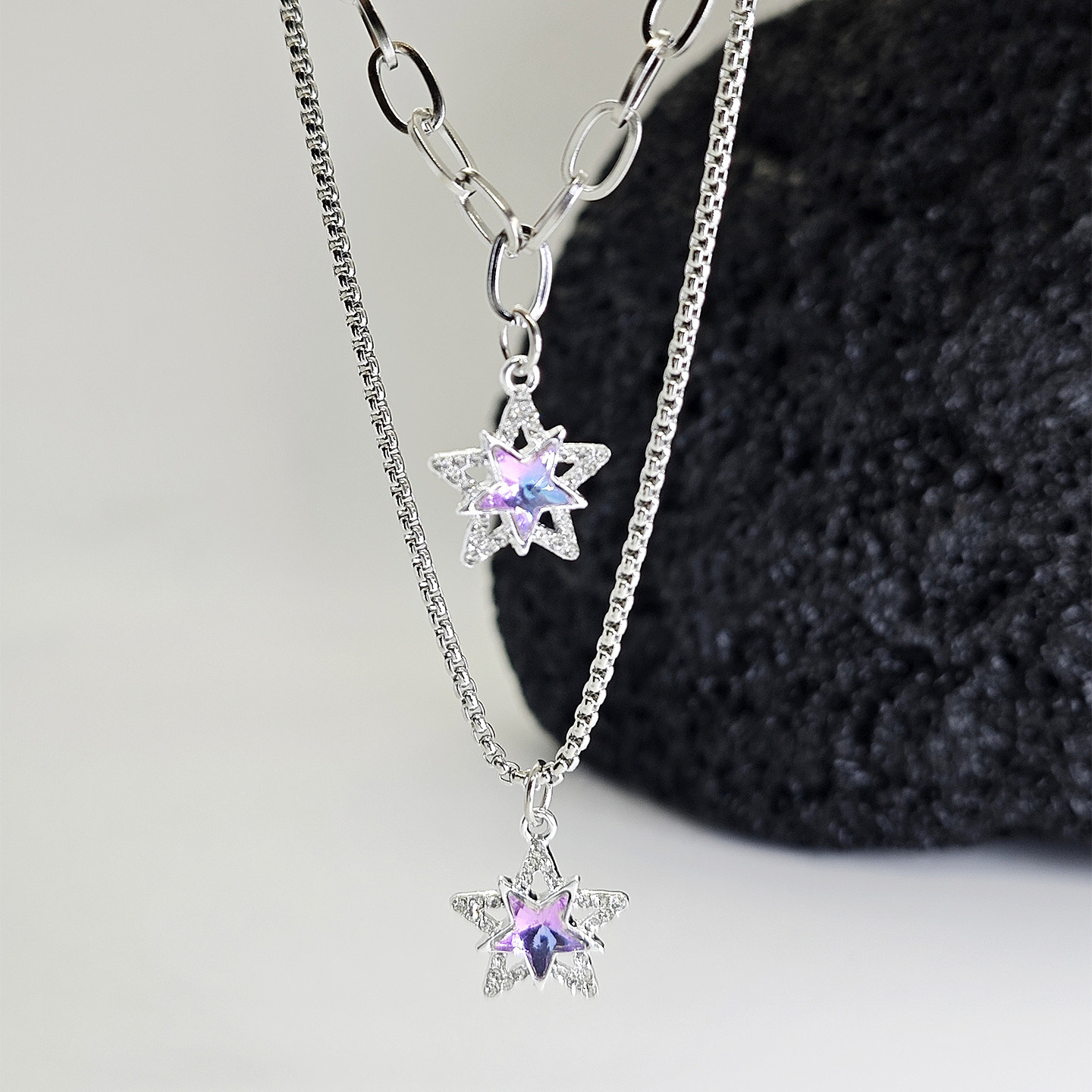 紫色星星项链吊坠饰品钛钢个性蛇骨短款双层叠加链男女气质潮酷新