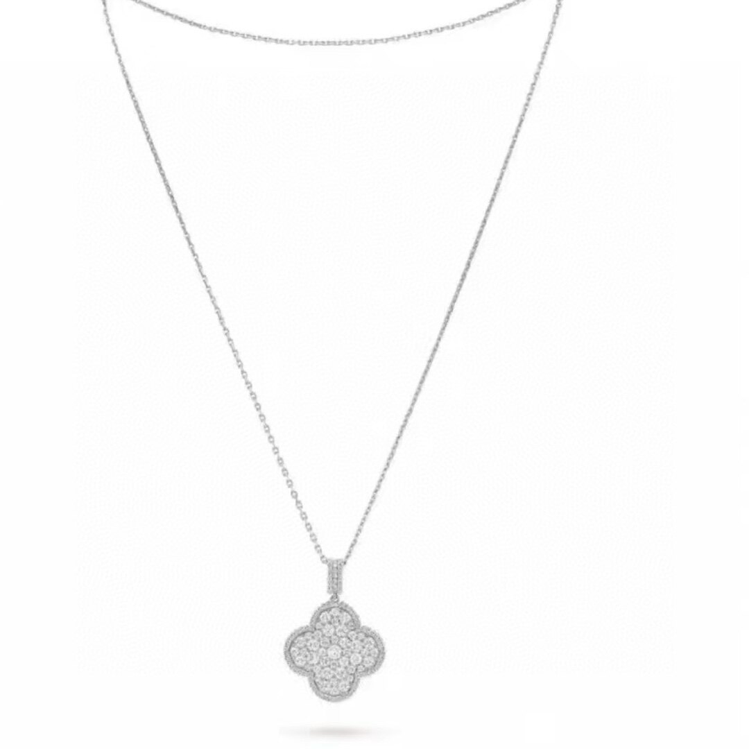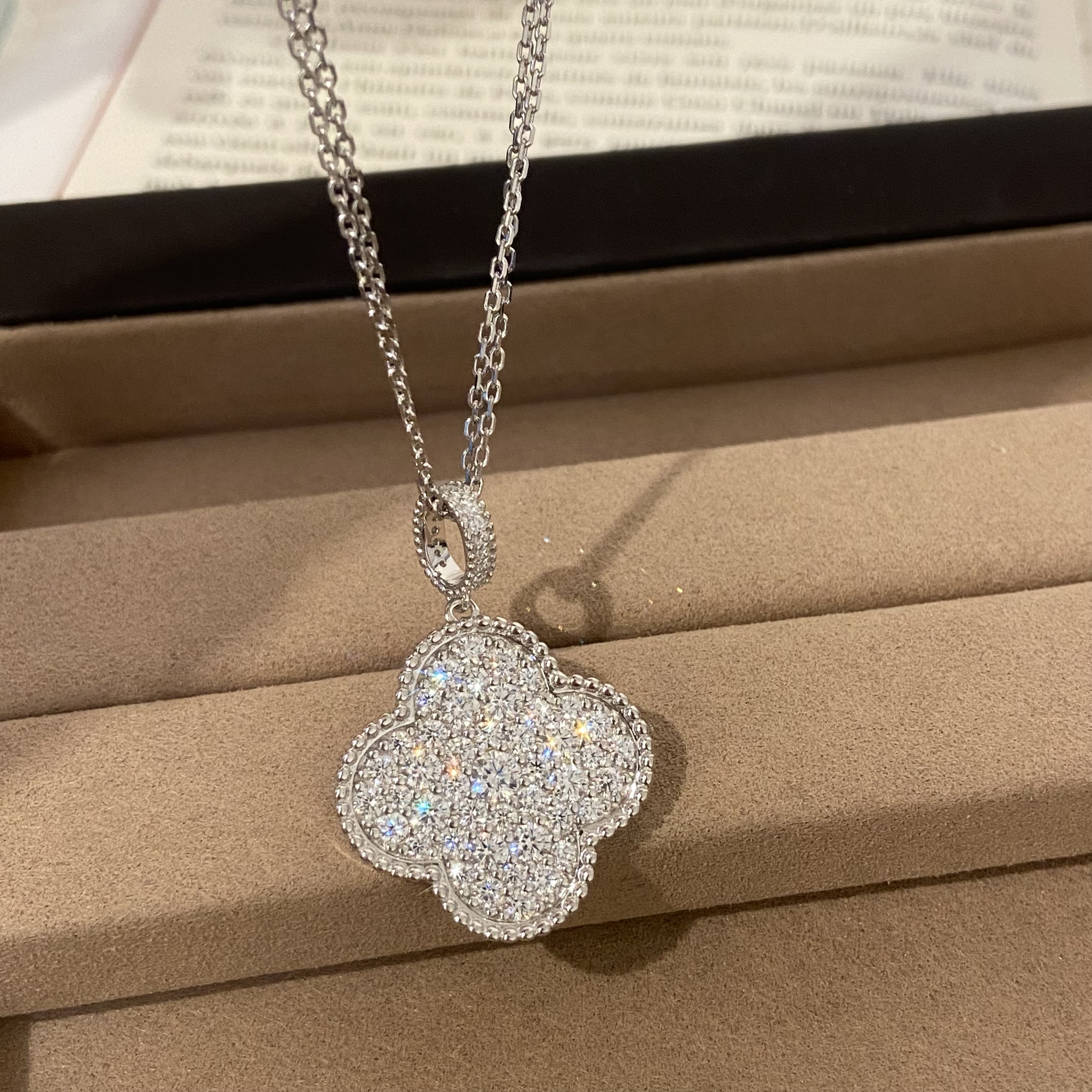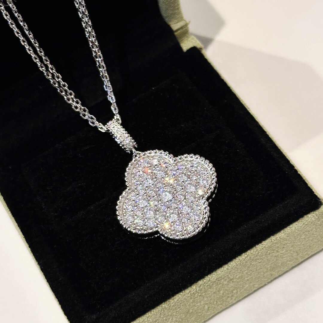 幸运满钻大号四叶草项链太阳花通体925纯银长款毛衣链重工打造女