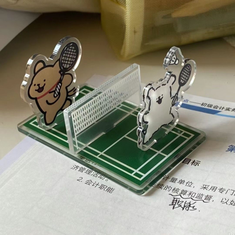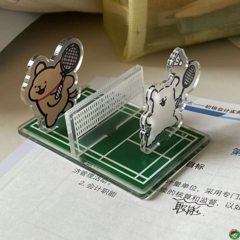 线条小狗羽毛球场立牌卡通可爱亚克力桌面小摆件办公桌桌子生日