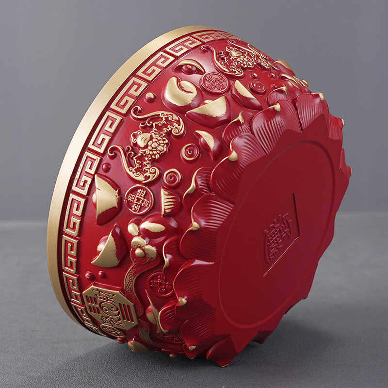 黄铜红色聚宝盆招财聚财铜缸米缸存钱罐水晶摆件家用客厅装饰收藏