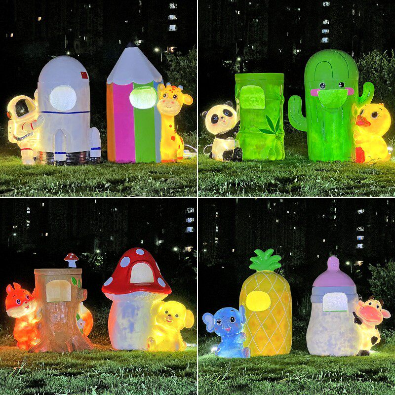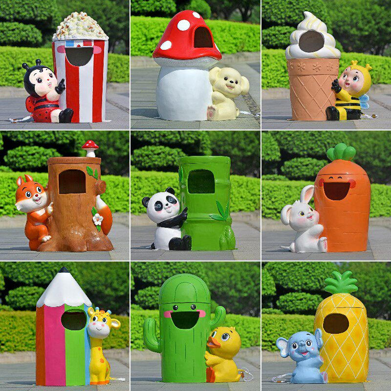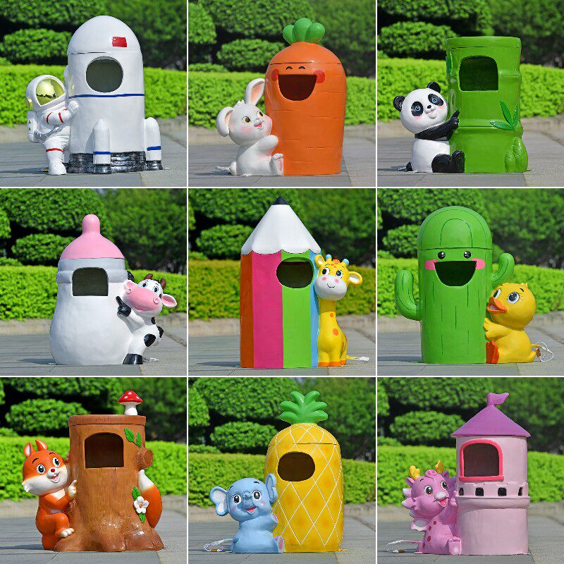 玻璃钢卡通创意垃圾桶雕塑户外公园林景区幼儿园发光动物装饰摆件