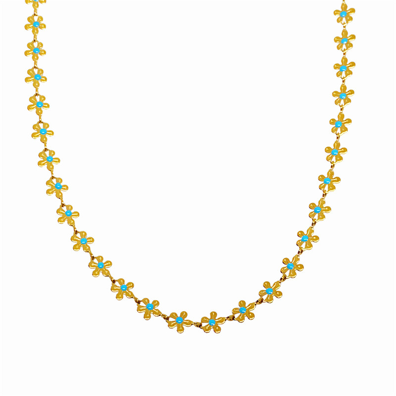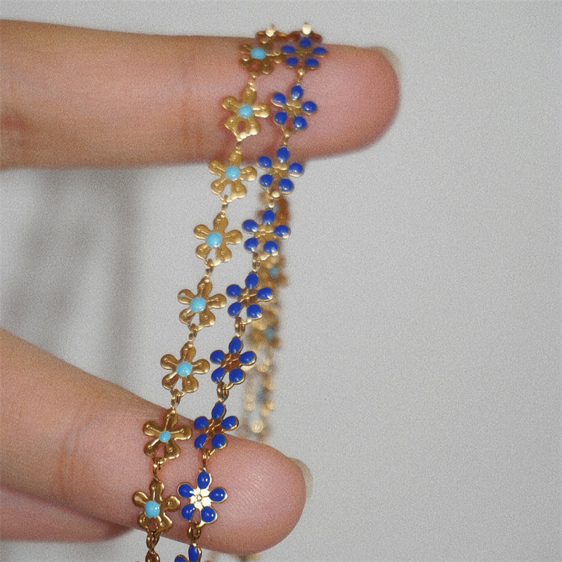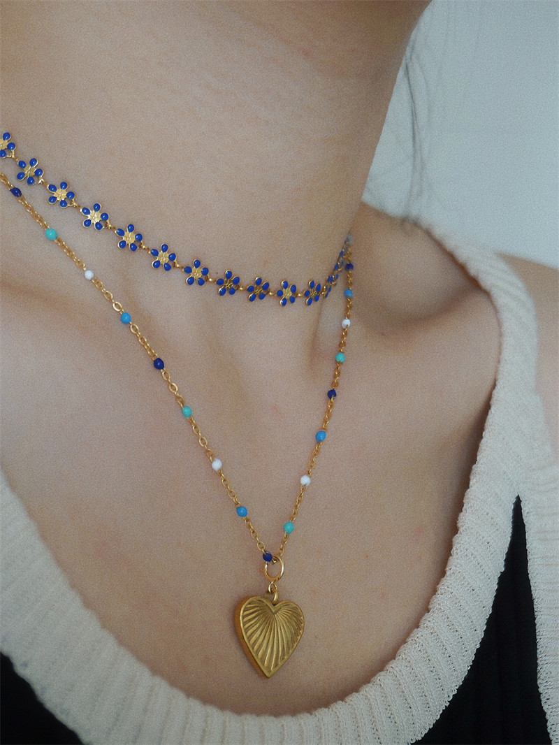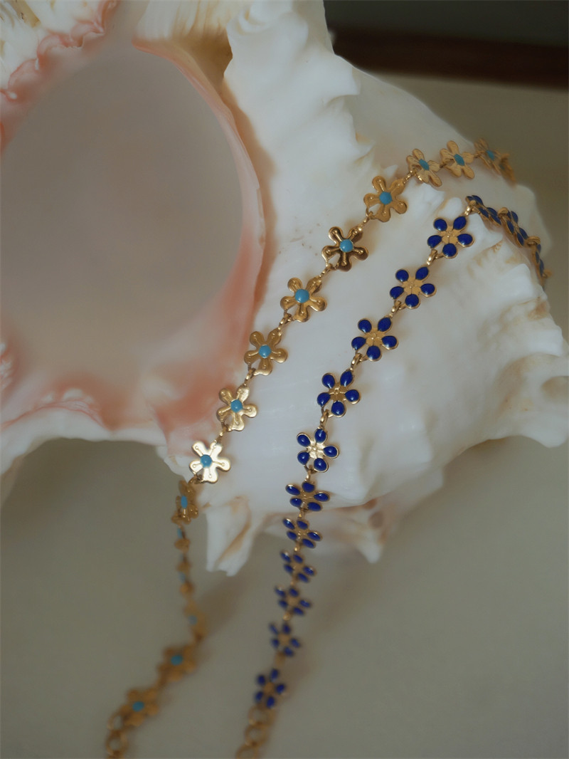WITH GJ 蓝色系复古滴油雏菊花朵叠戴项链小众设计甜美颈链choker