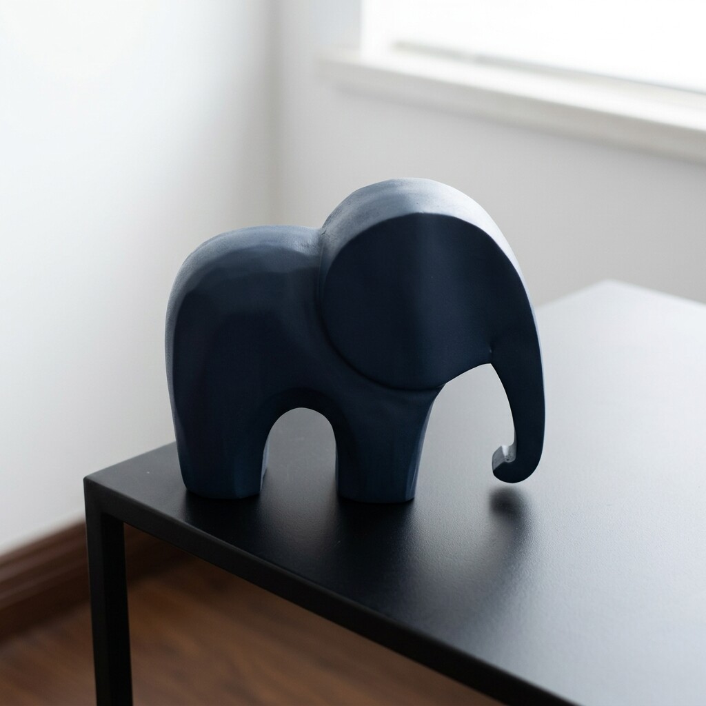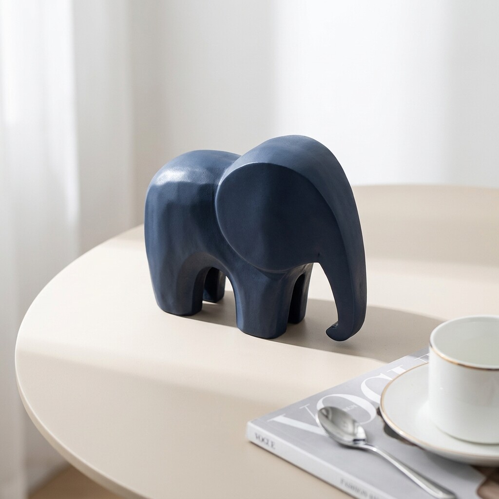 简约大象摆件深蓝色皮革装饰品桌面电视柜创意动物小摆件