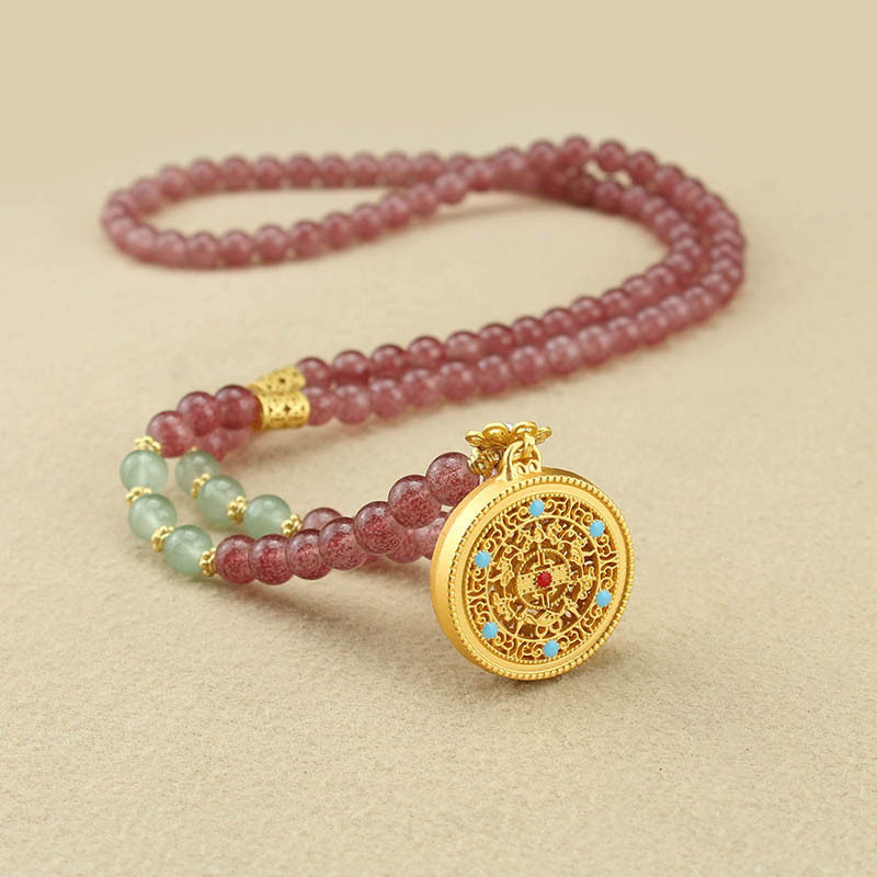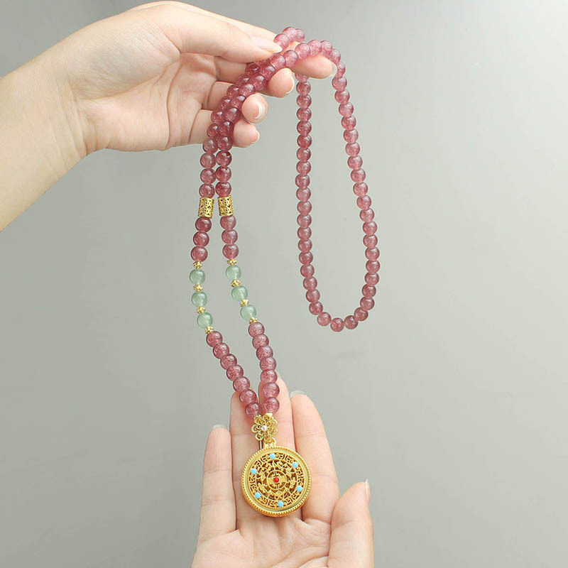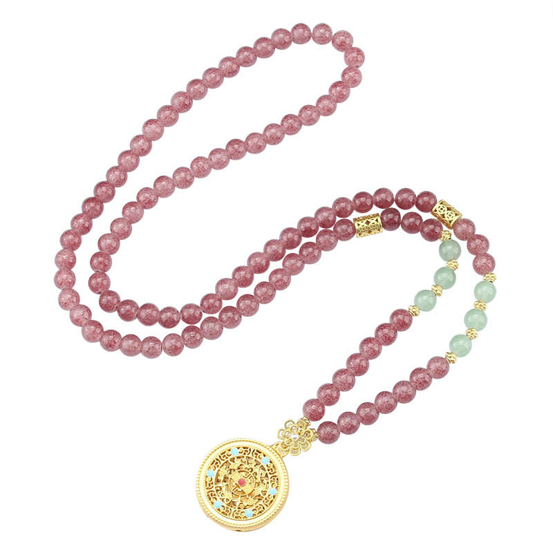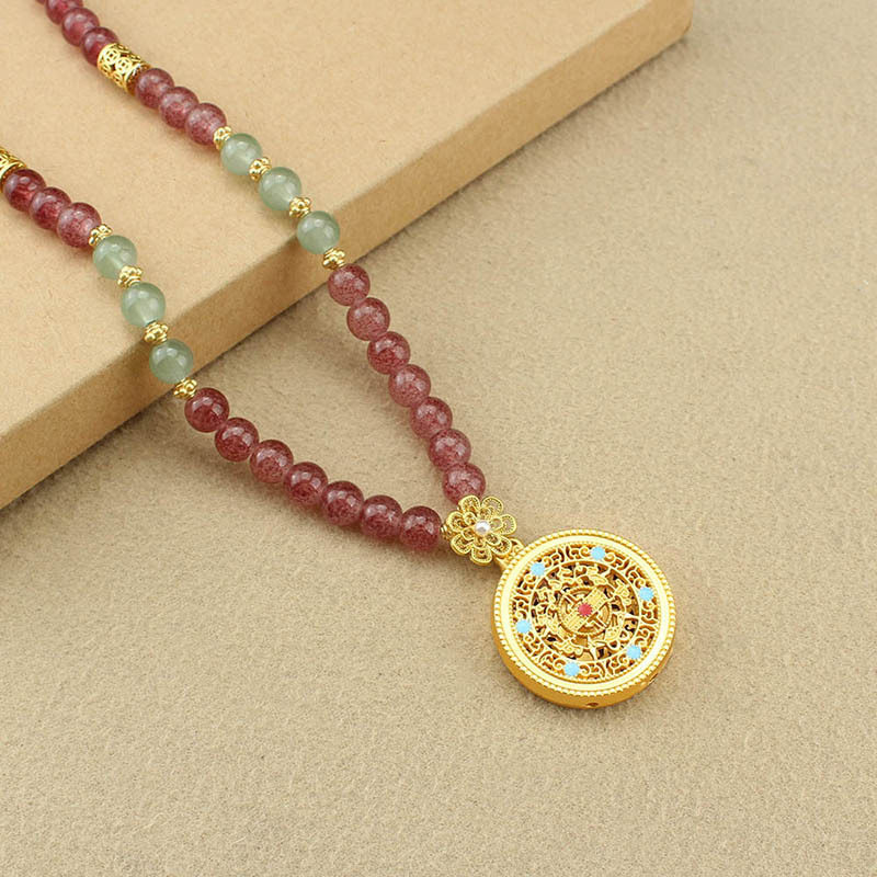 新中式国风紫色串珠圆盘吊坠项链小众设计感复古旗袍汉服气质配饰