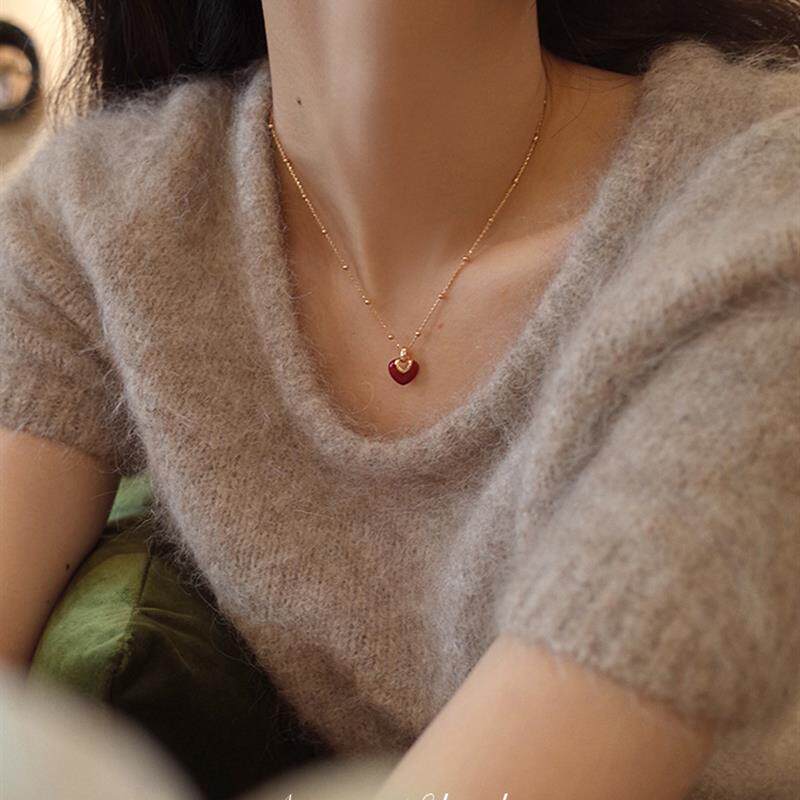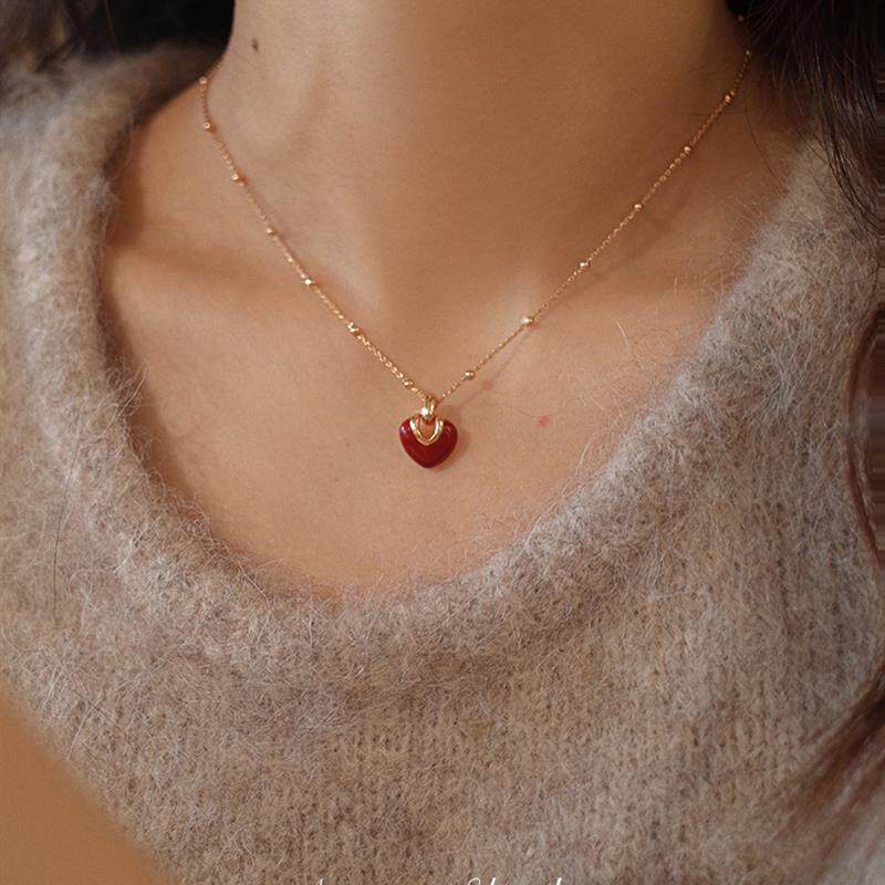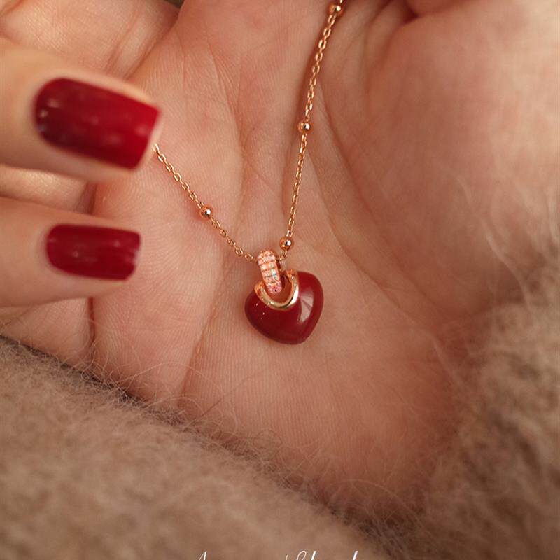AMO红磨坊红色爱心项链女春夏高级感甜美轻奢小众锁骨链礼物