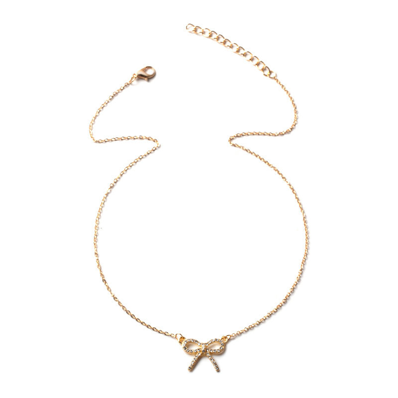 欧美跨境饰品简约时尚蝴蝶结吊坠女士合金镶钻项链颈链毛衣链