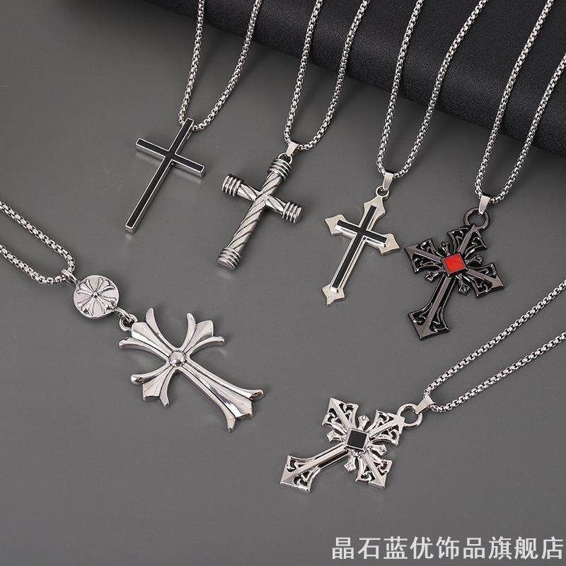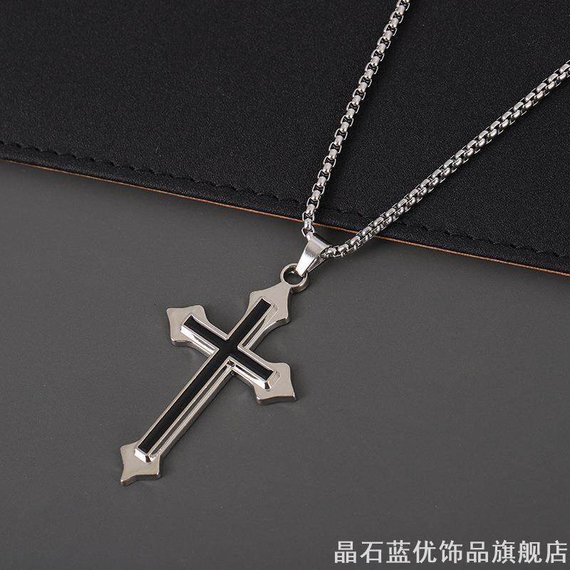 十字架吊坠儿童项链复古潮牌毛衣链男孩装饰品学生T恤配饰百搭
