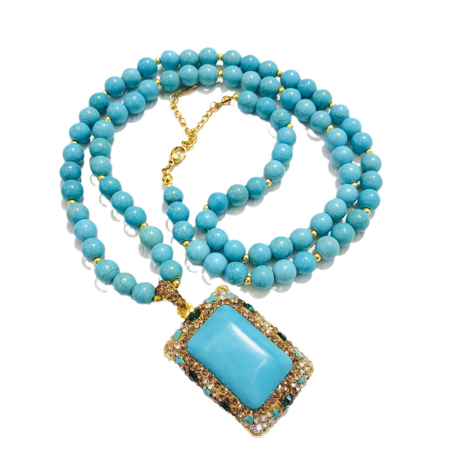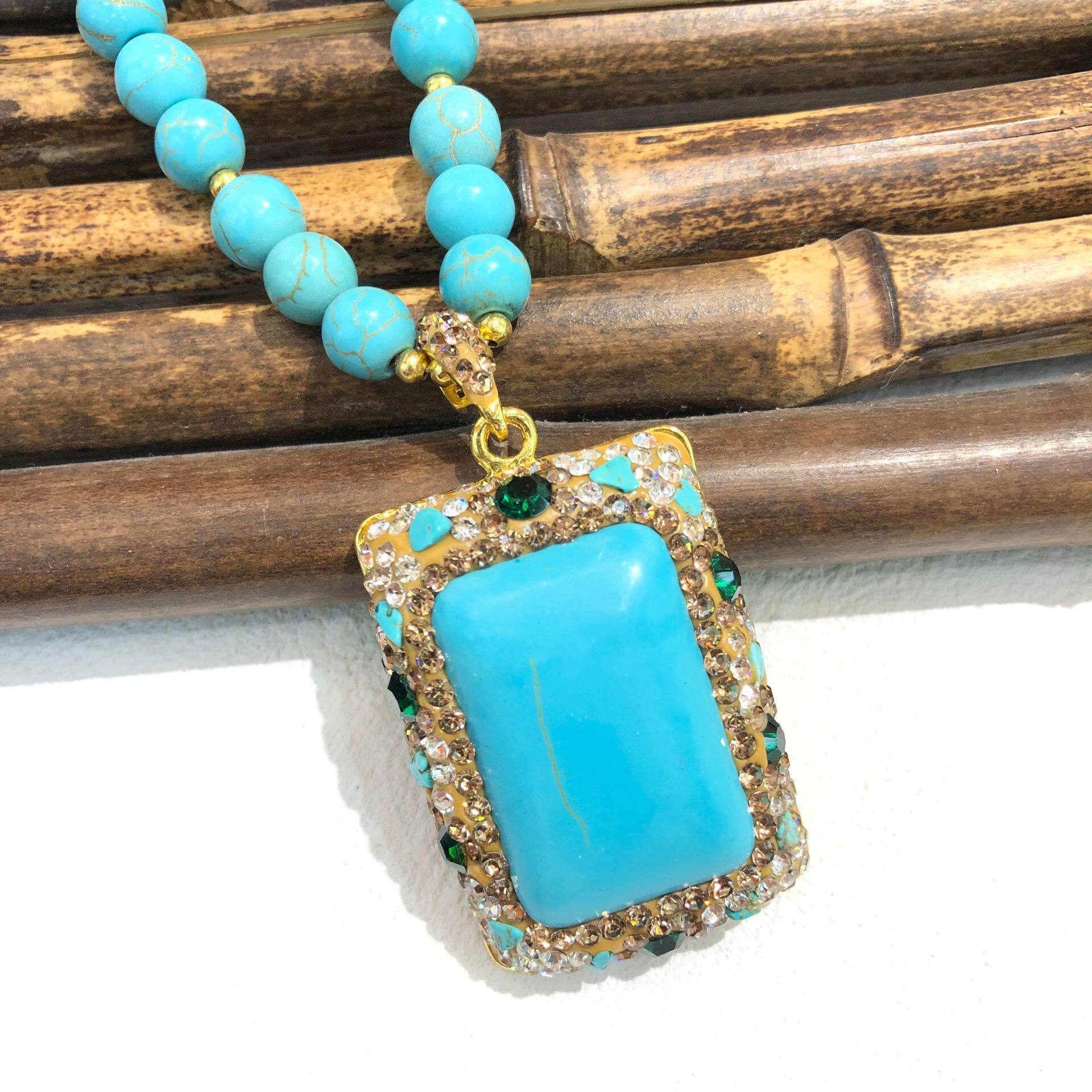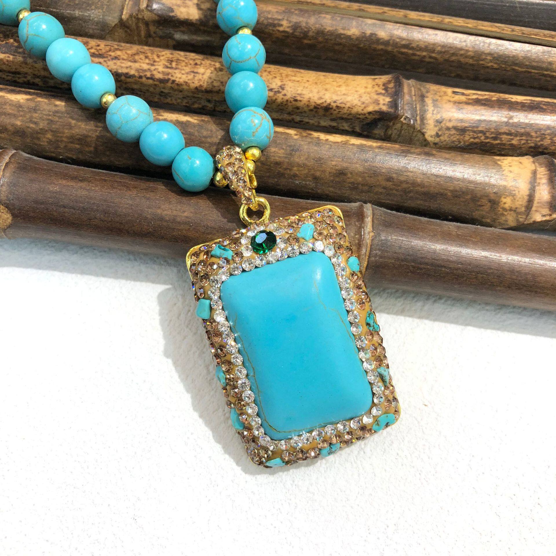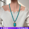 绿松石项链镶嵌绿色大闪钻复古又时尚方形吊坠高级感百搭厂家