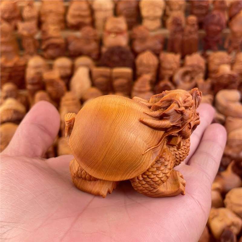 正品崖柏实木雕刻龙龟手把件文玩吉祥瑞兽家居客厅装饰品桌面