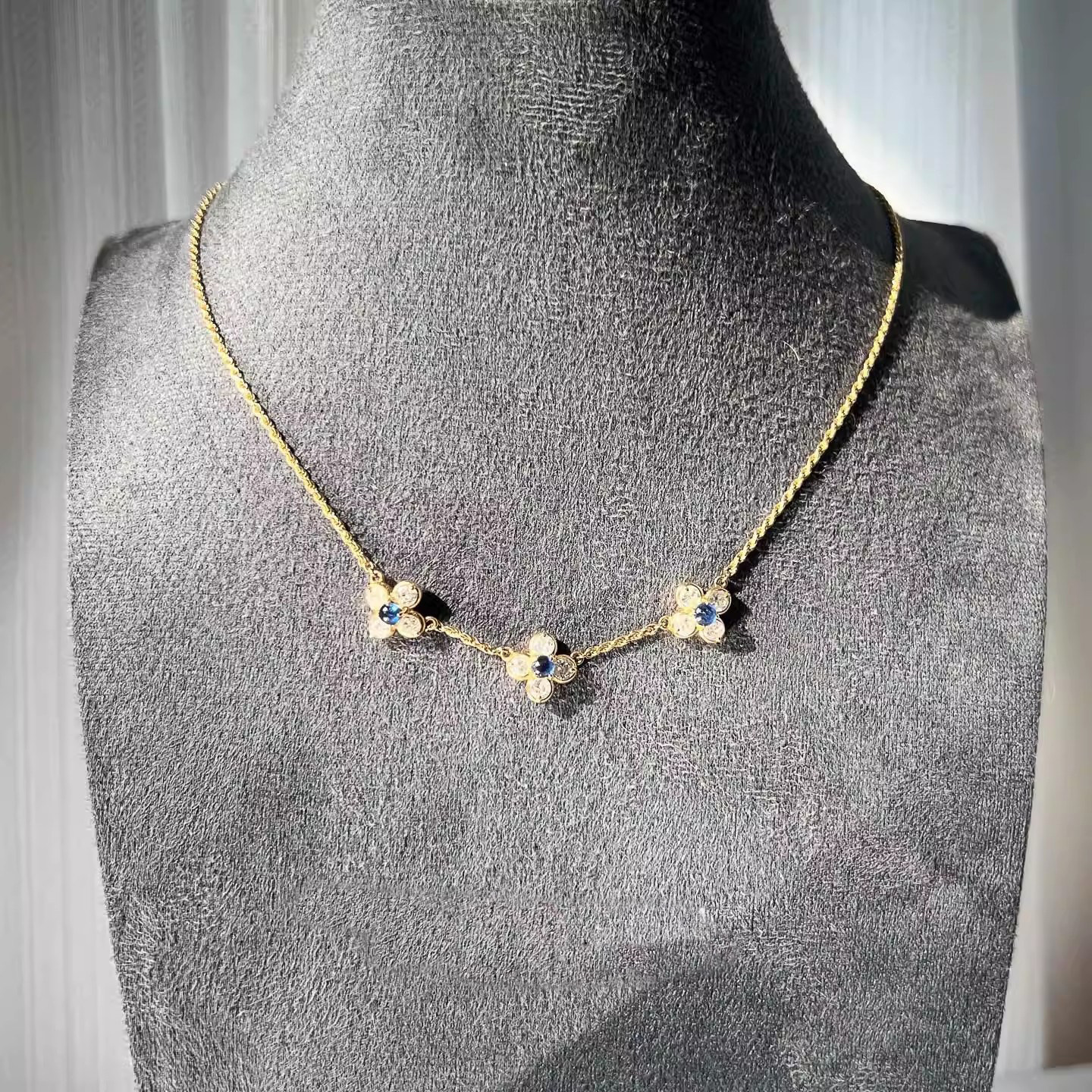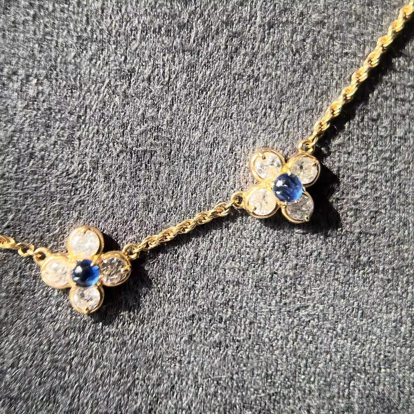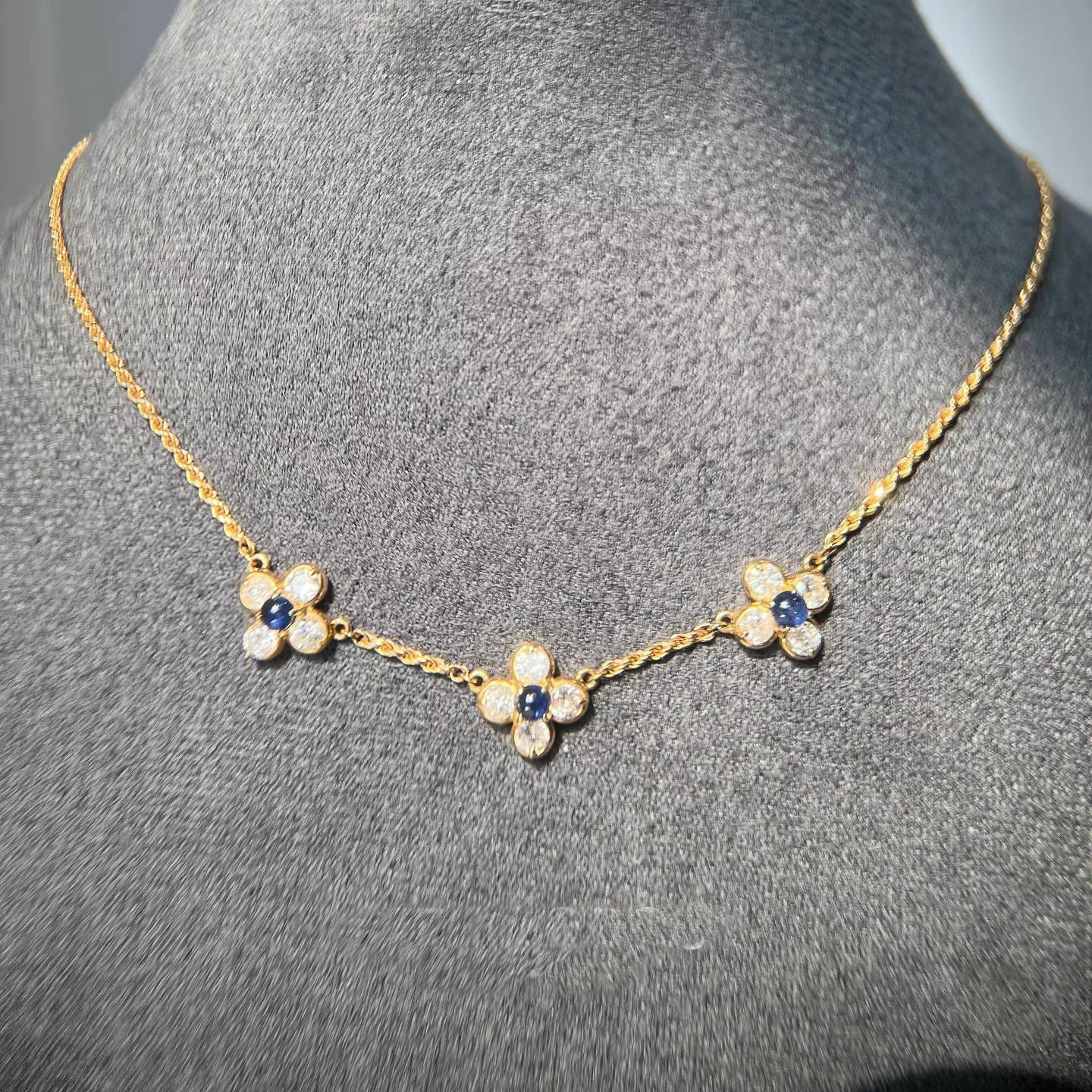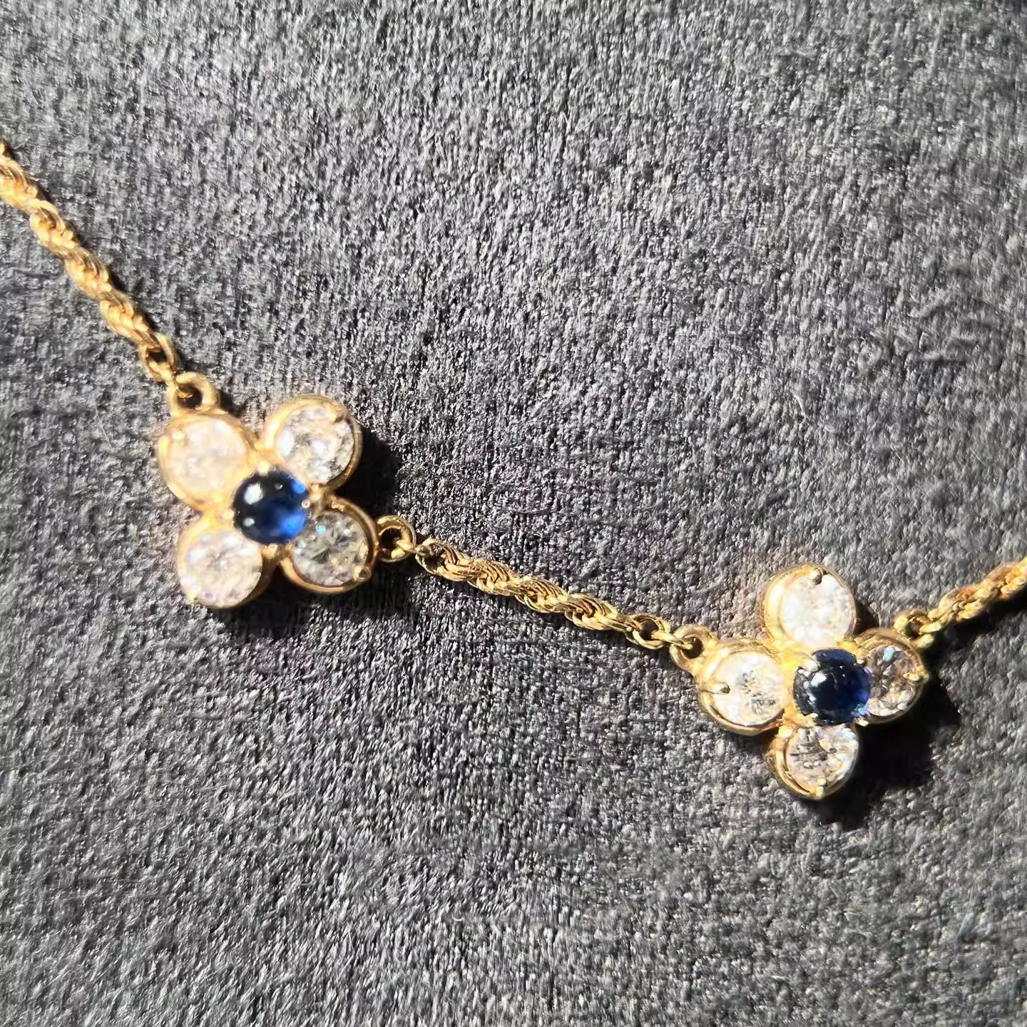 罗马旧事~复古做旧蓝色小花项链女精致独特小众设计高级感毛衣链