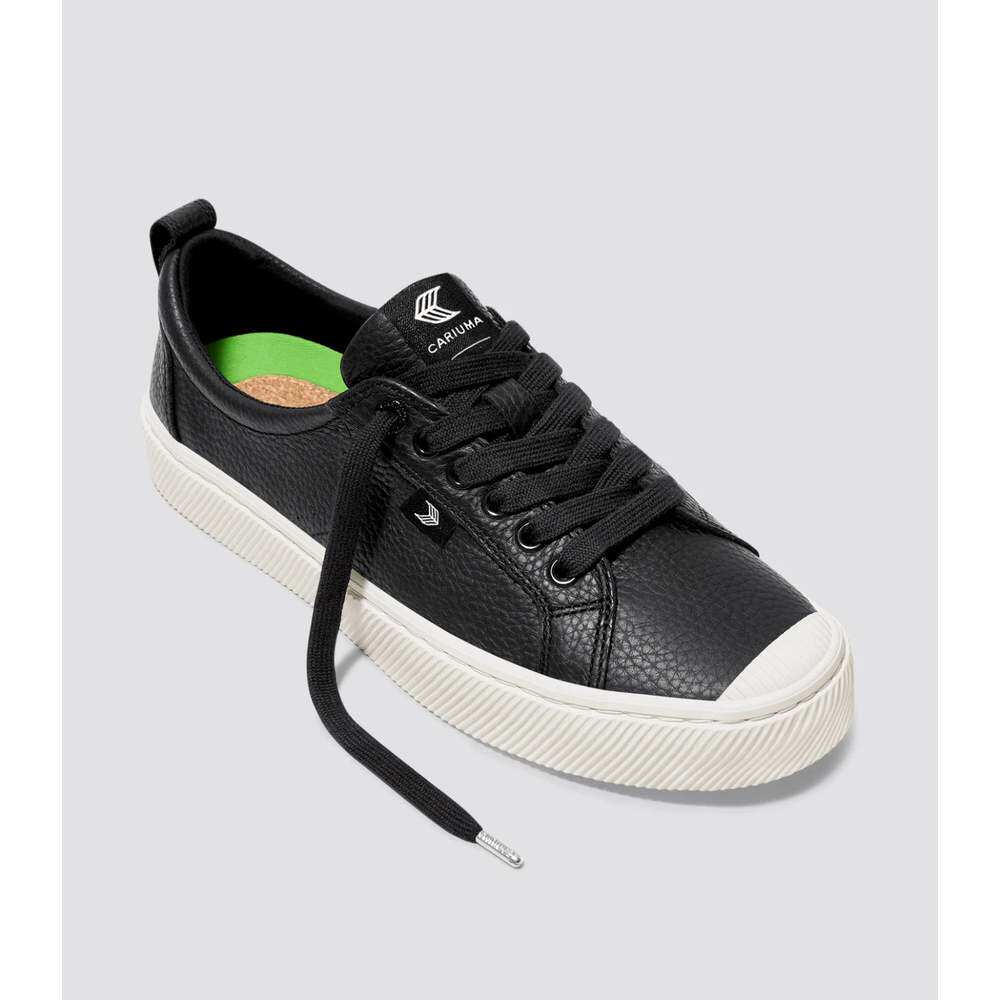 自营Men's Cariuma OCA Low Sneakers Black Leather Lace Up Cas