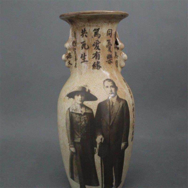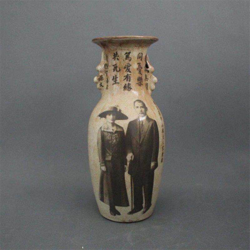 民国时期孙中山双耳花瓶书房客厅摆件收藏怀旧景德镇彷古瓷器做旧