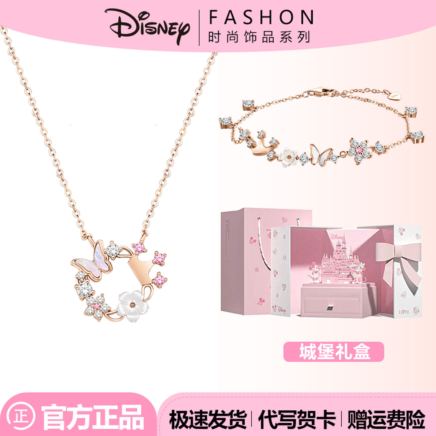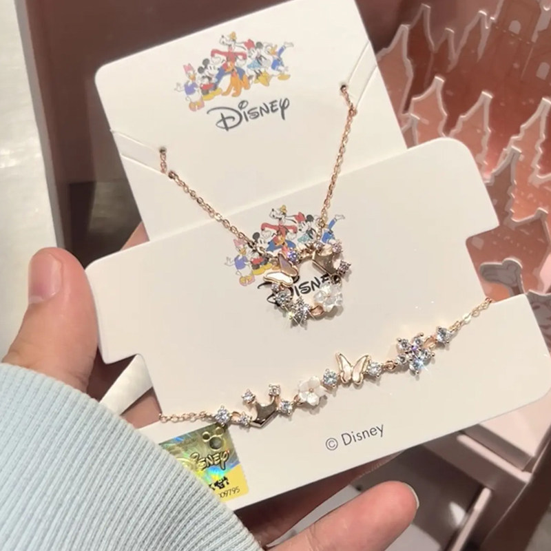 迪士尼银饰公主系列花蝶手链女轻奢小众精致高级感项链生日礼物