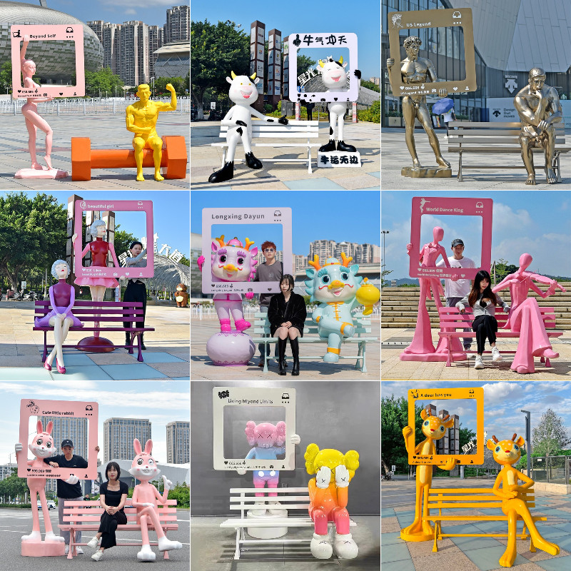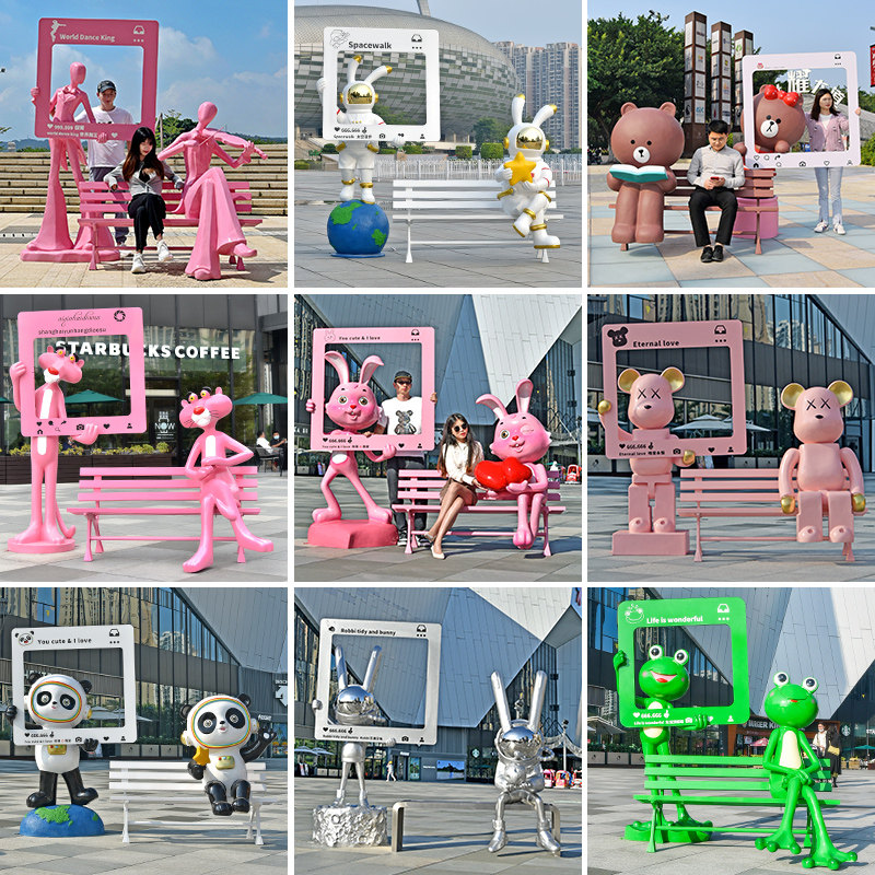 卡通动物网红打卡合影相框雕塑玻璃钢座椅拍照探店售楼部景区装饰