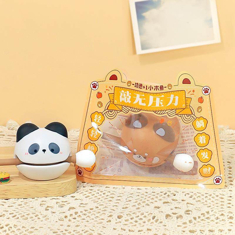 敲无压力功德+1小木鱼解压摆件办公工位敲打情绪控制治愈解压玩具
