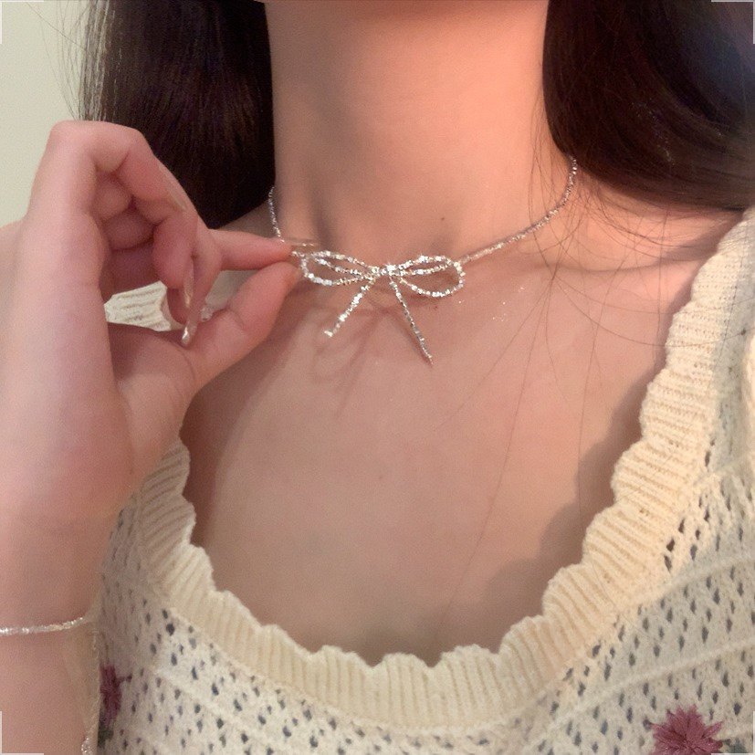 网红项链碎银蝴蝶结锁骨链白色简约脖子饰品超仙颈链配饰女choker