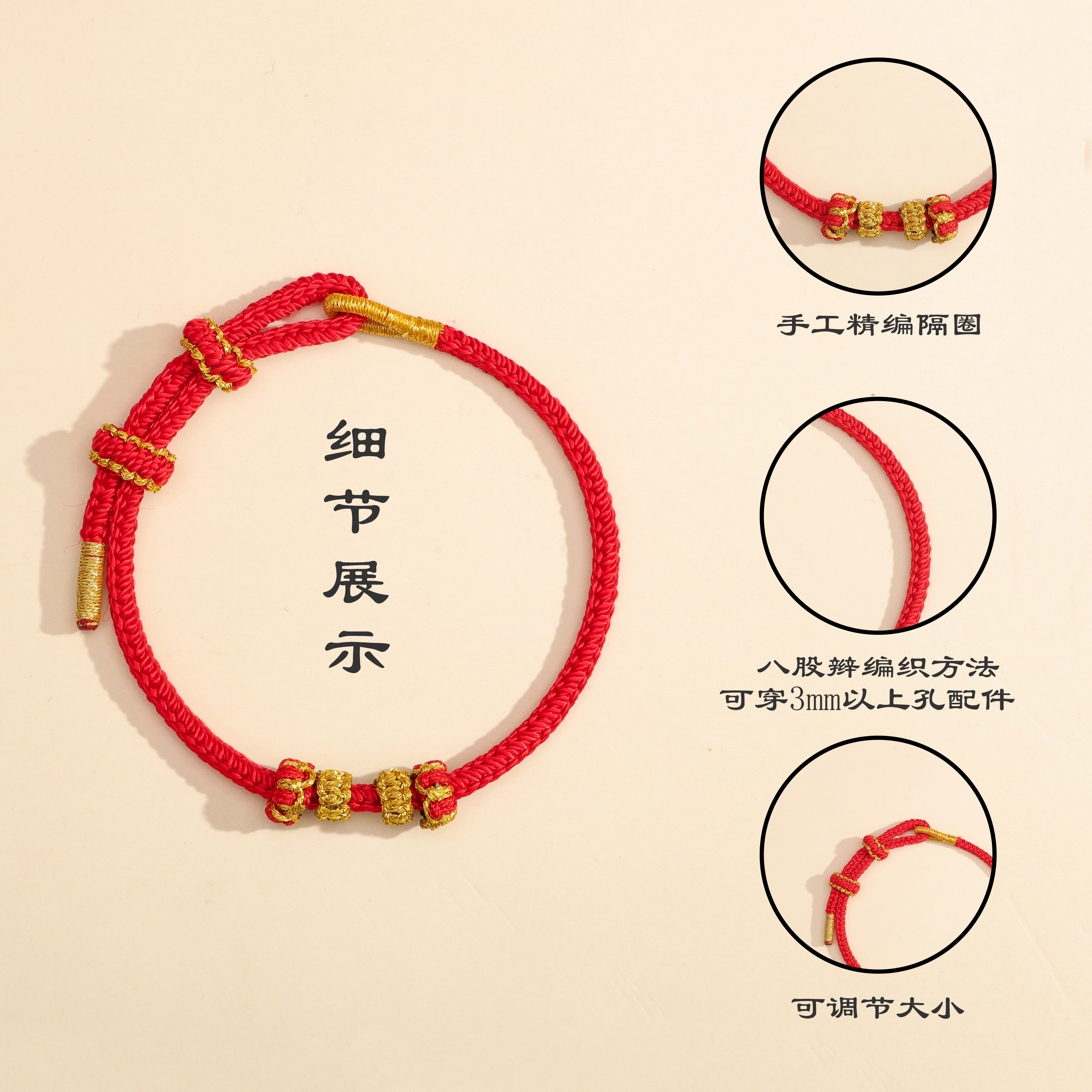 可串珠半成品手绳莲花结红绳手链手工编织八股辫本命年穿配件手饰