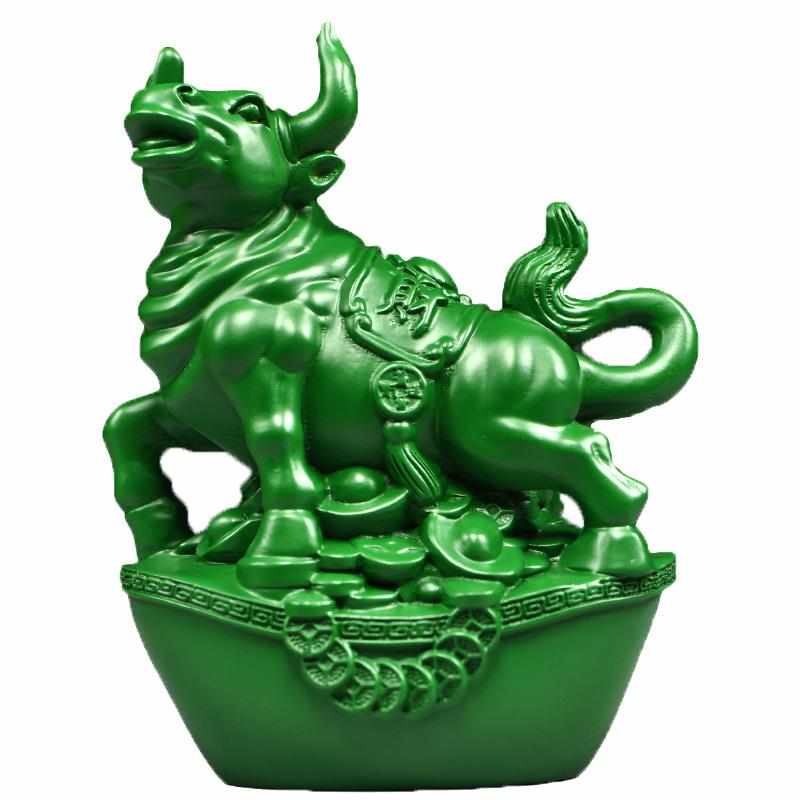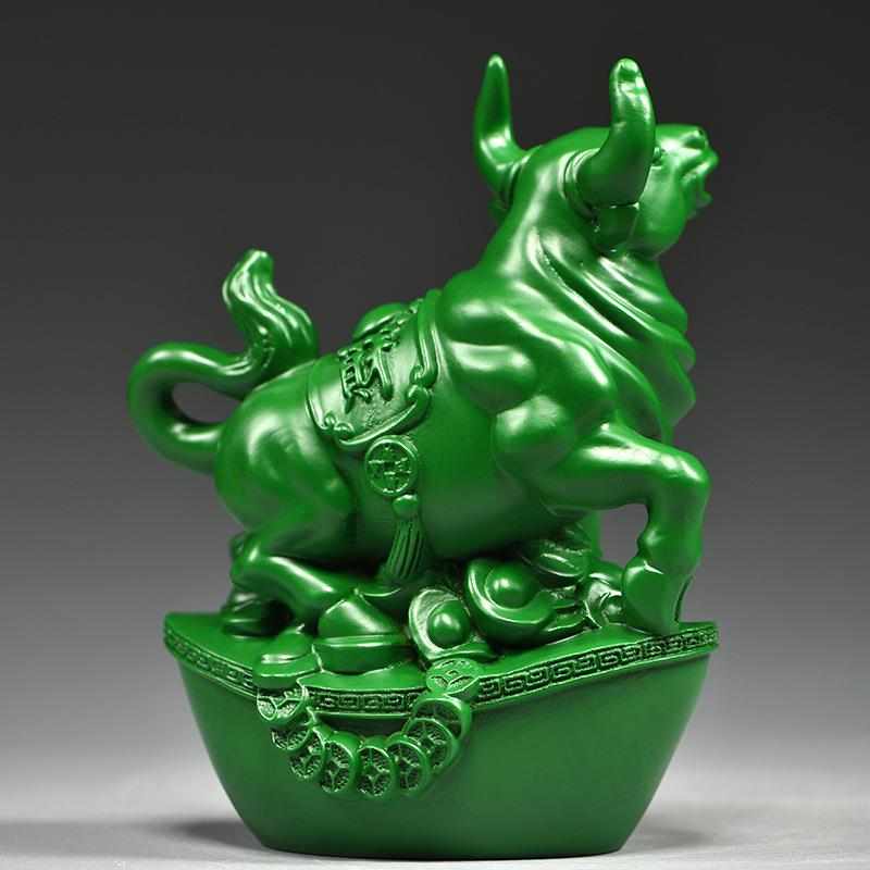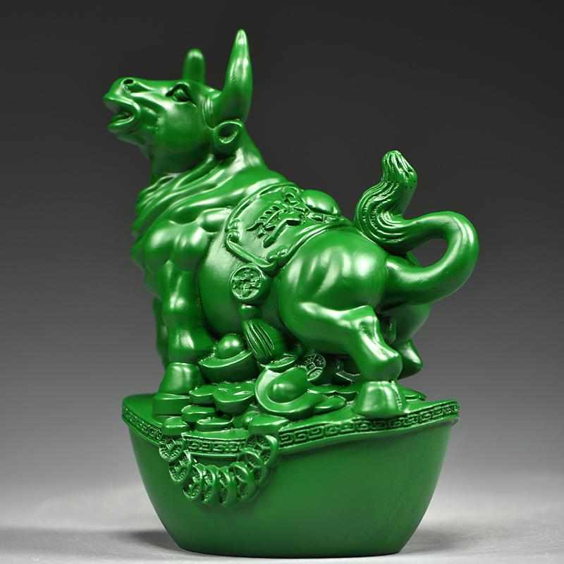 适用于绿色木雕牛摆件十二生肖牛实木家居客厅电视柜办公装饰红木