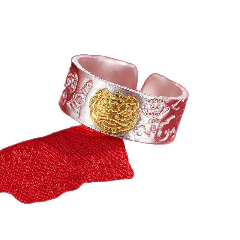 新款醒狮戒指 百搭光面吉言开口戒指送女友七夕礼物饰品