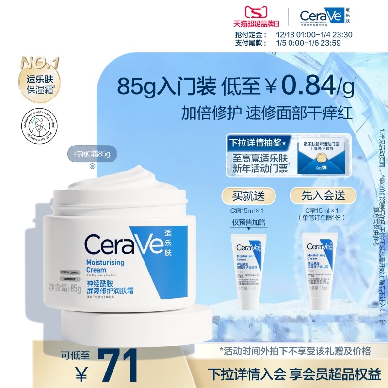 CeraVe适乐肤C霜保湿修护乳液面霜身体男女士正品张凌赫同款