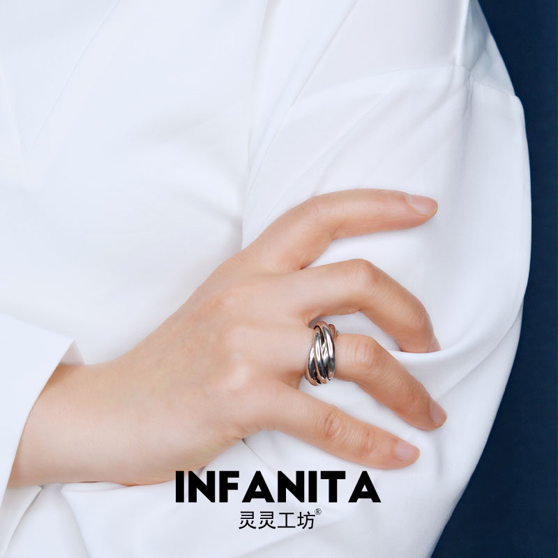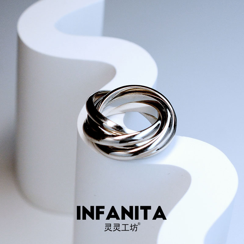 夏季新款S925纯银戒指女个性原创小众设计五环闭口素圈ins潮流R51