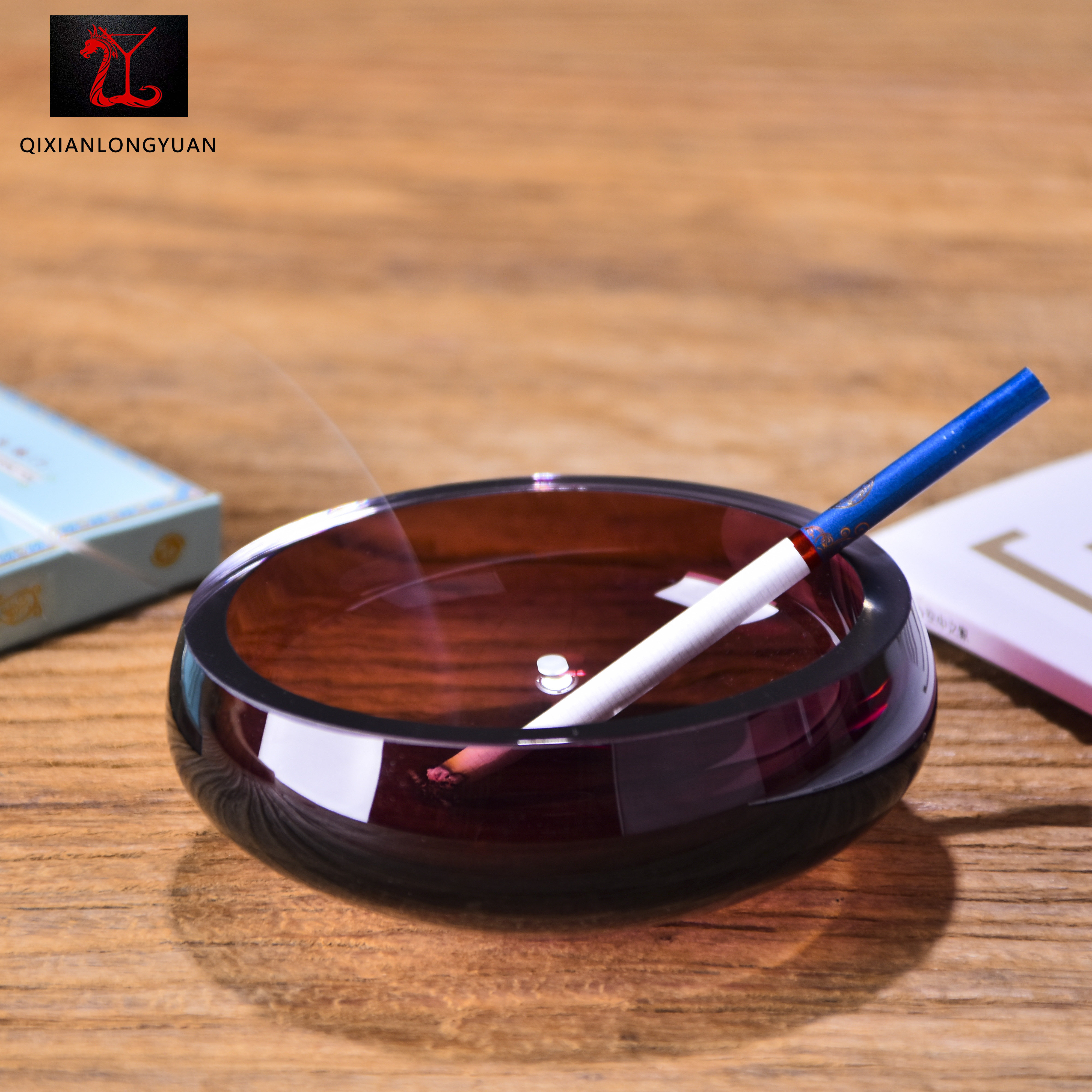 人工吹制紫色水晶玻璃时尚装饰品轻奢送礼五星酒店加厚雪茄烟缸