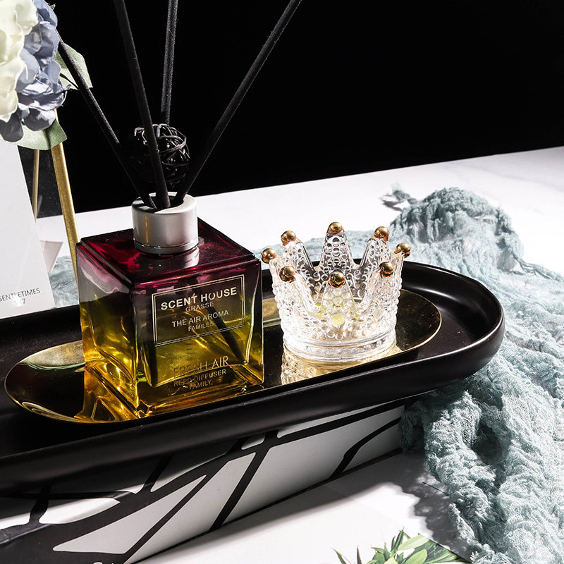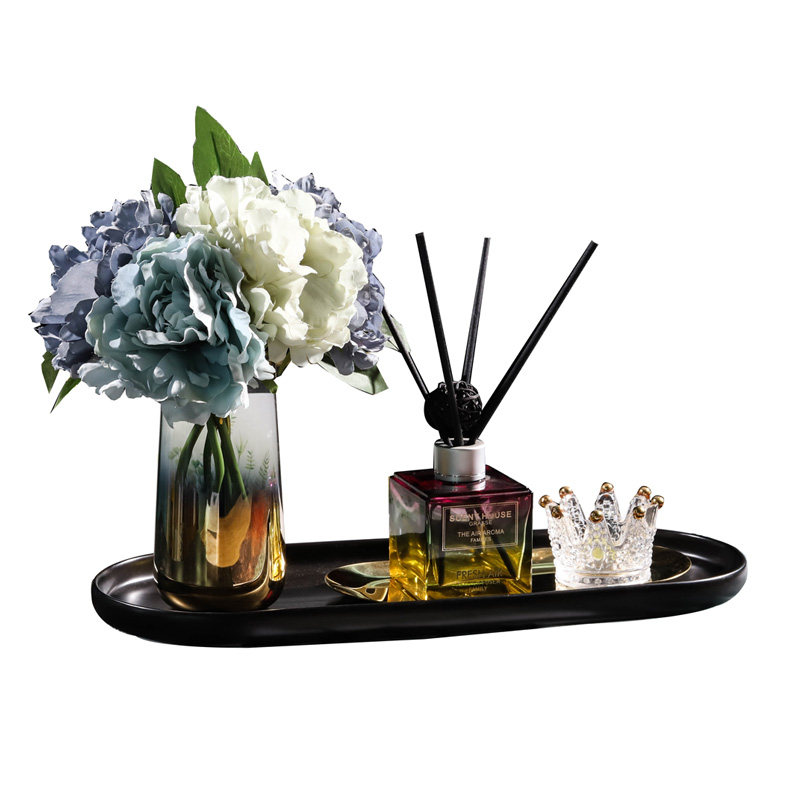 流嫣LIUYAN 样板房卧室浴室卫生间摆件软装无火香薰黑色托盘套装
