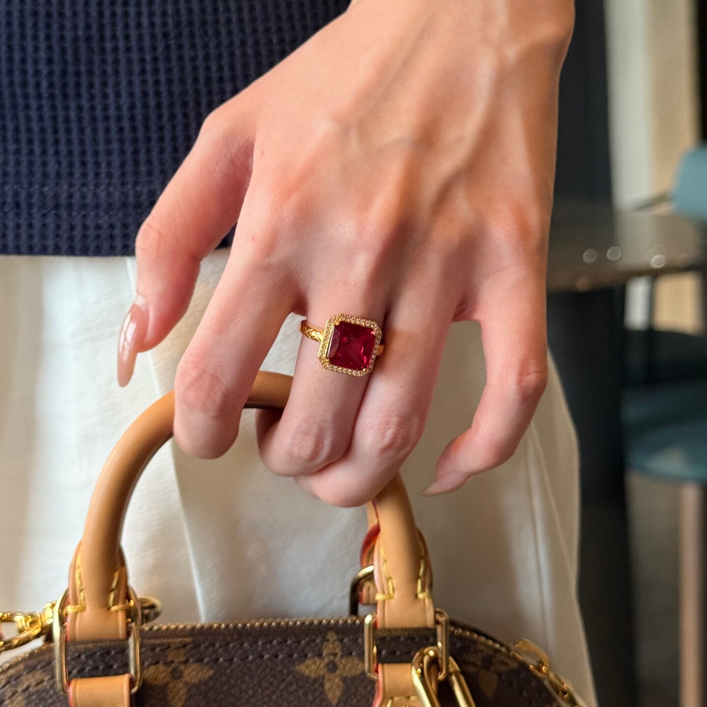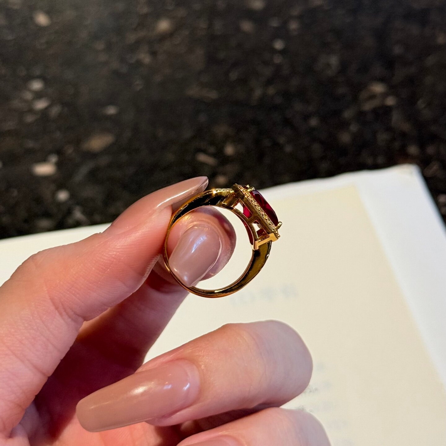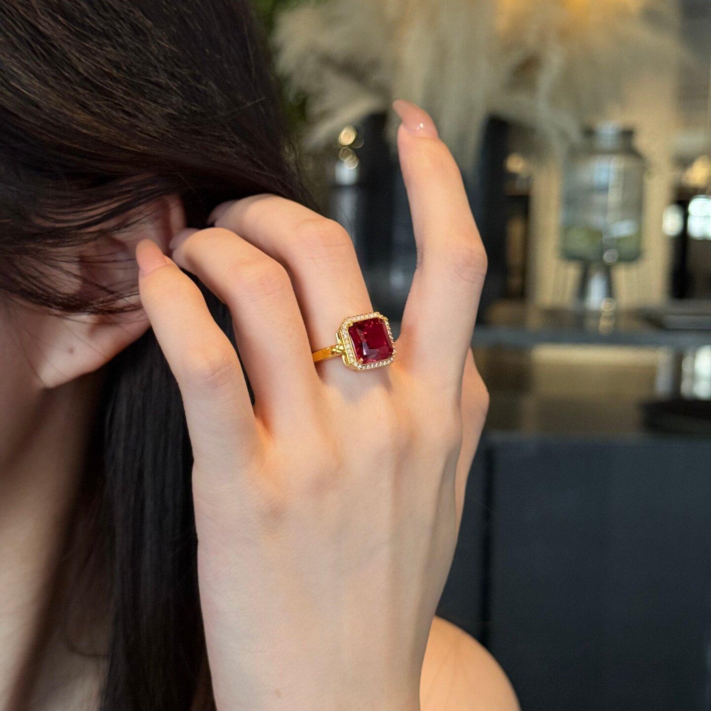 黄金红色大方糖戒指 足金999莫桑钻对戒结婚订婚送女友生日礼物男