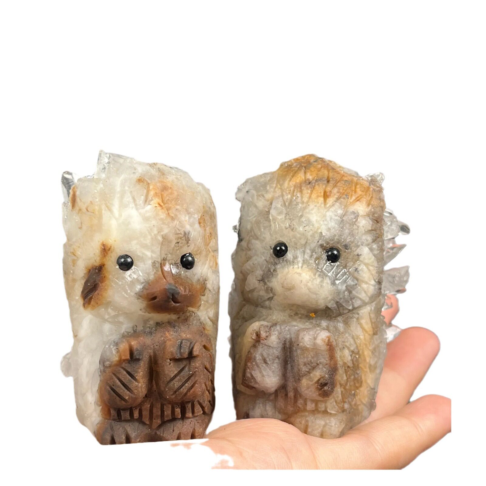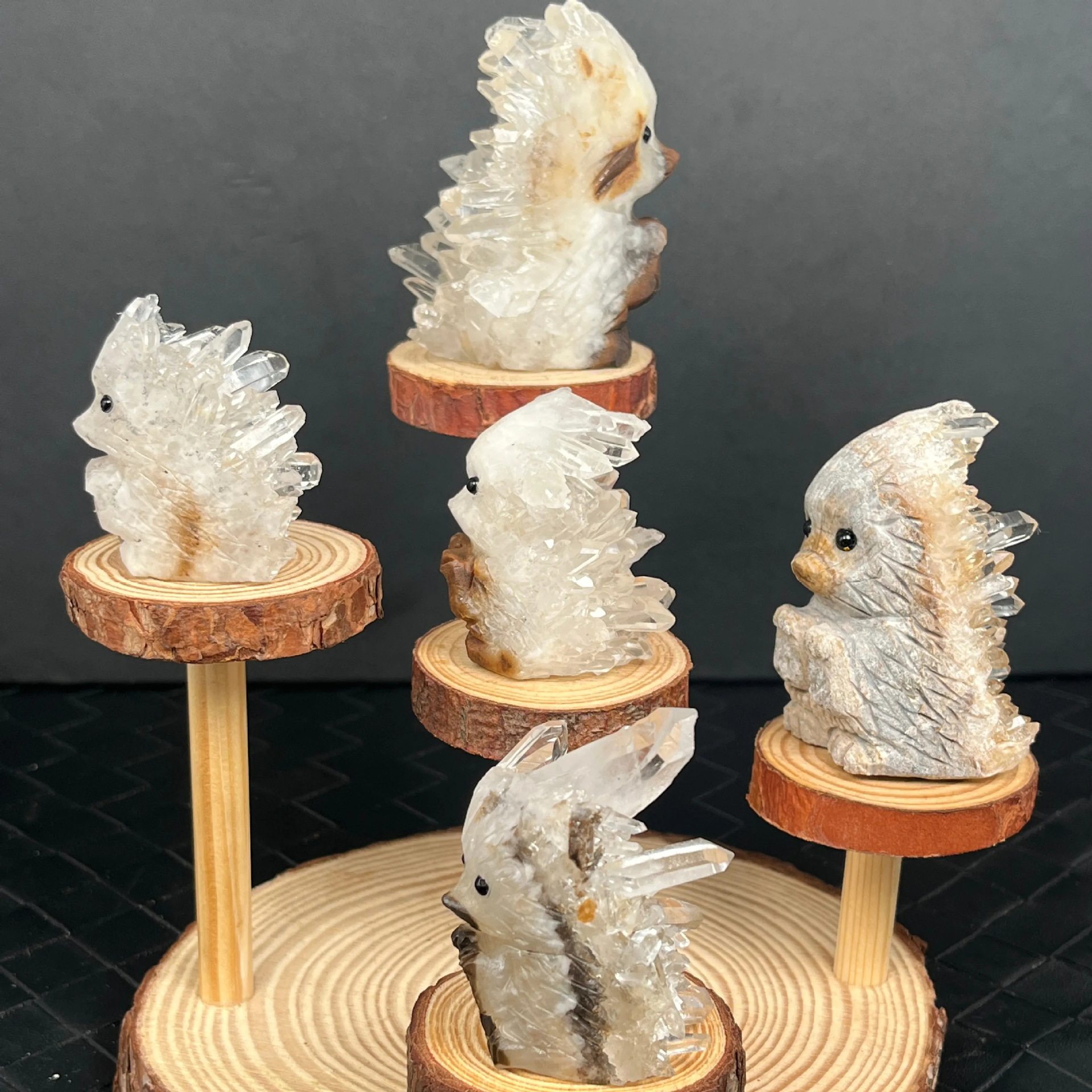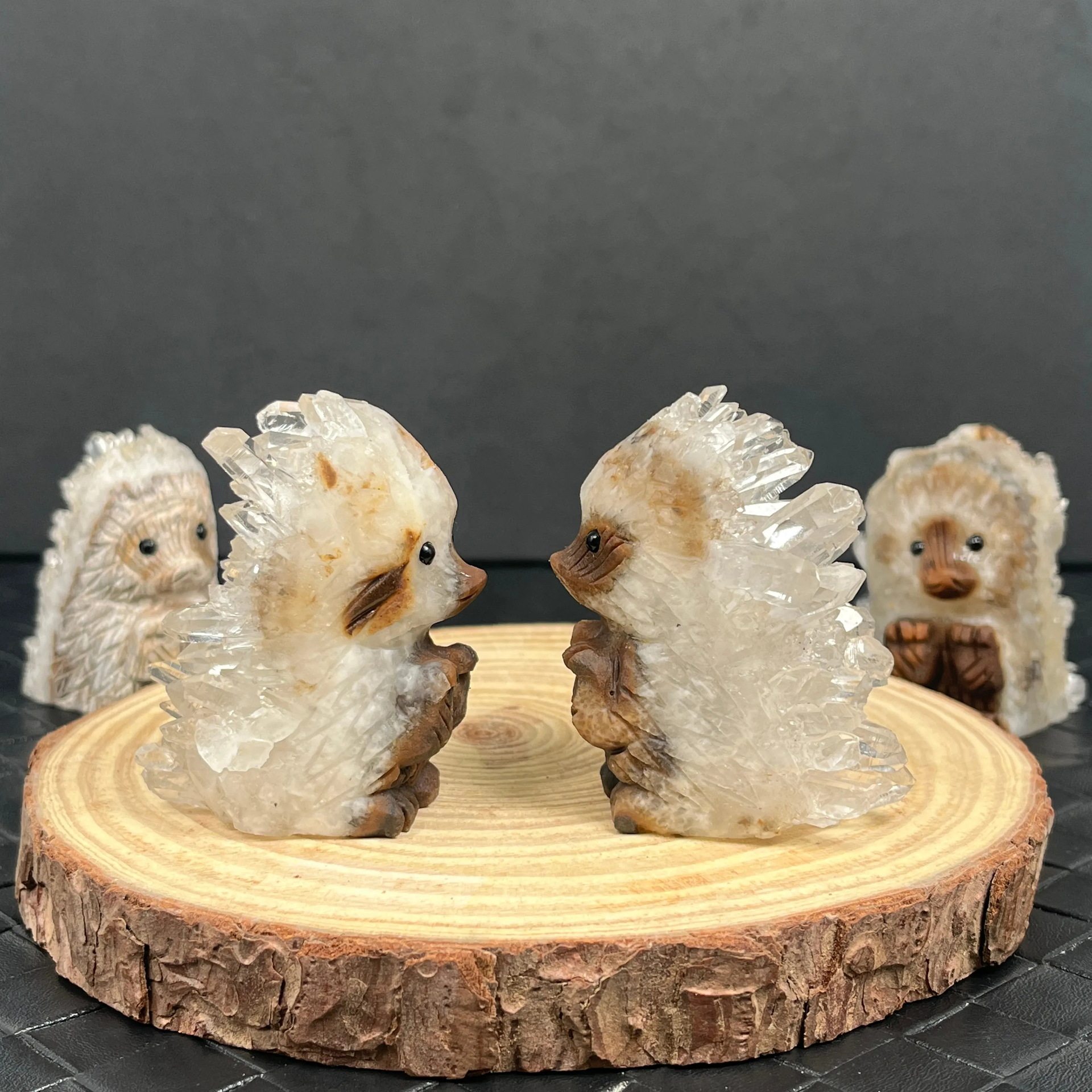 新品天然水晶白水簇刺猬雕刻件办公室桌面品摆件送人