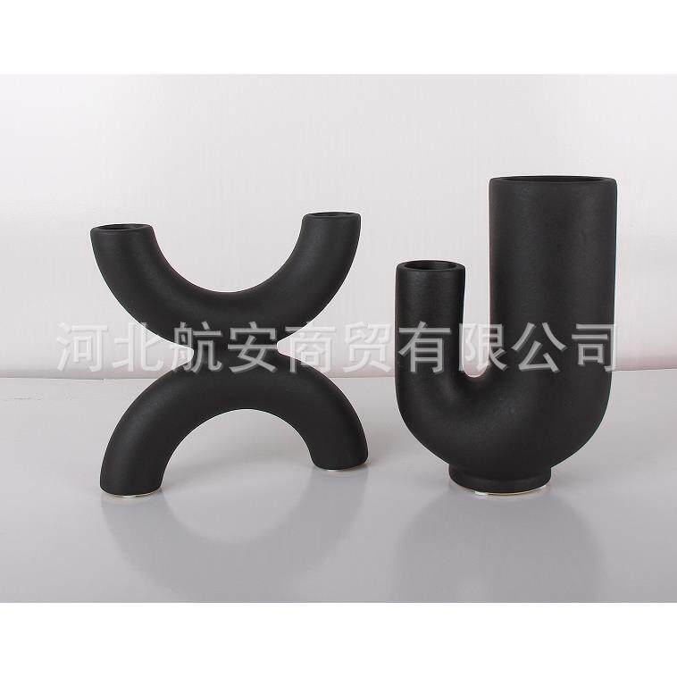 现代简约创意黑色陶瓷花瓶黑色工艺品摆件样板房售楼处桌面茶几