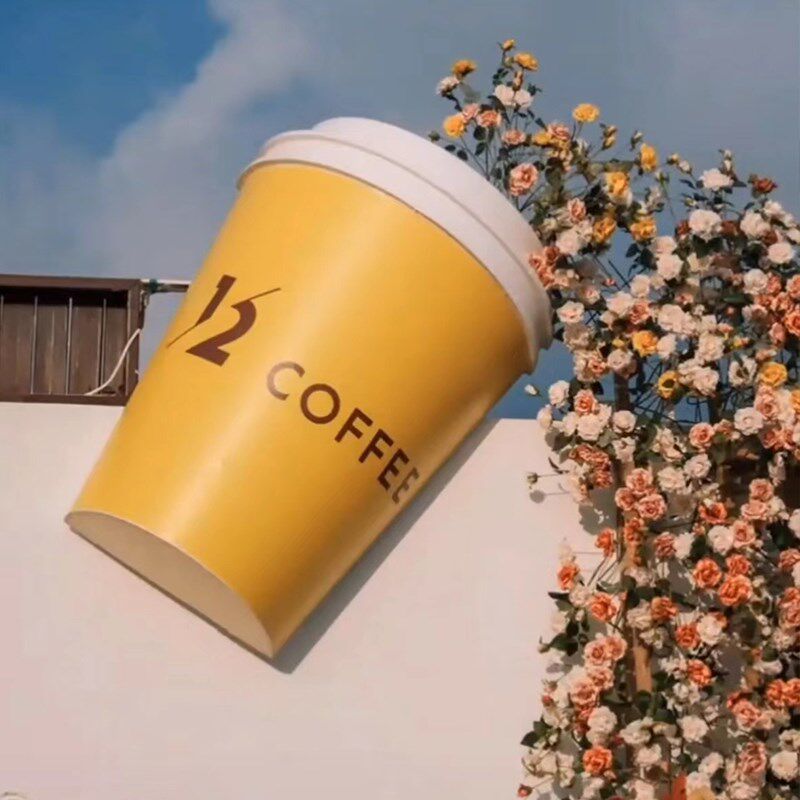 网红奶茶杯咖啡杯模型玻璃钢雕塑咖啡店门口店铺装饰落地大型摆件