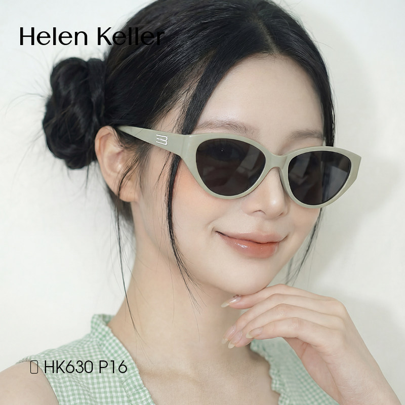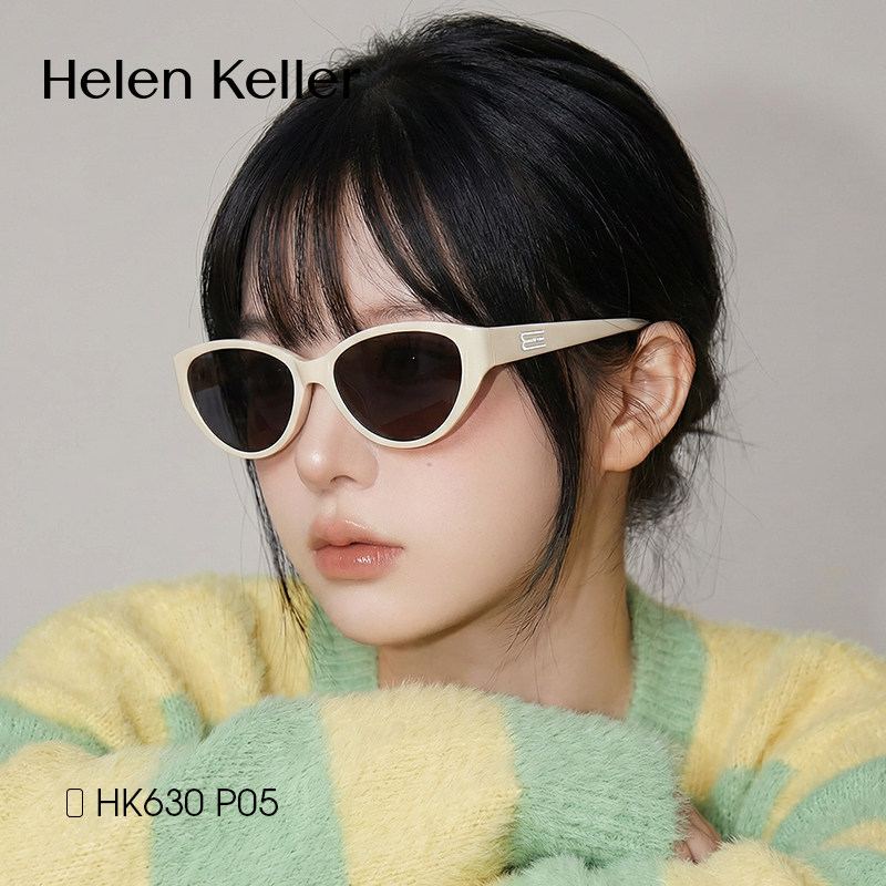 海伦凯勒白框猫眼墨镜女款近视可配带度数多巴胺窄框偏光太阳眼镜