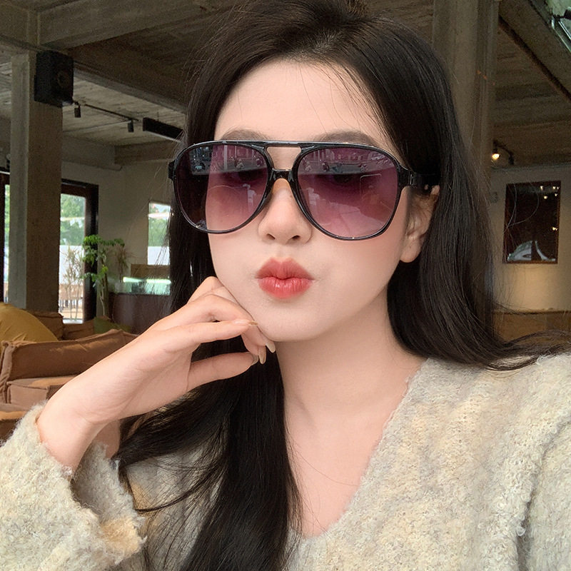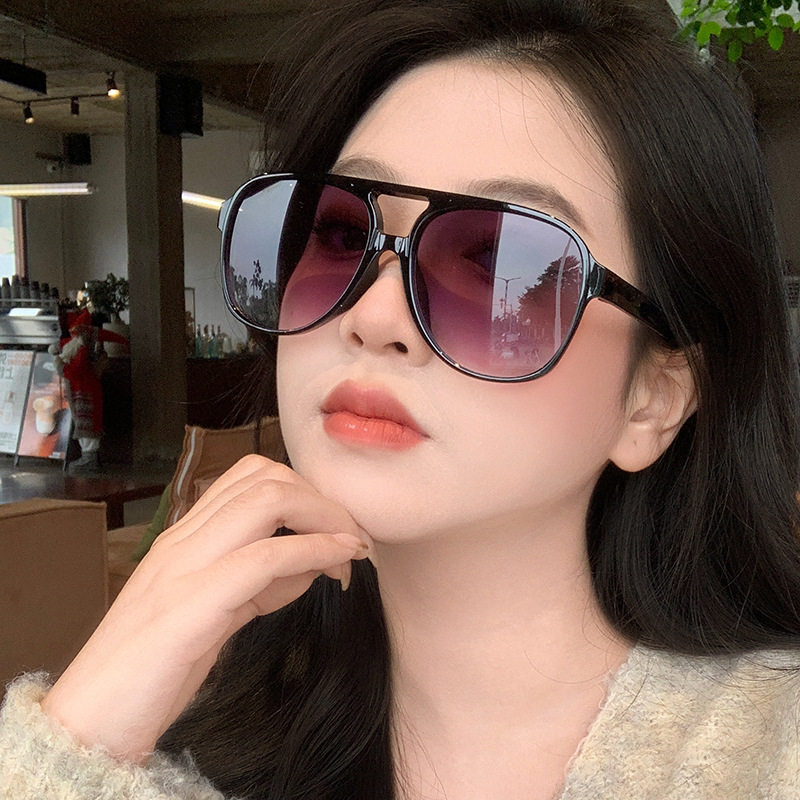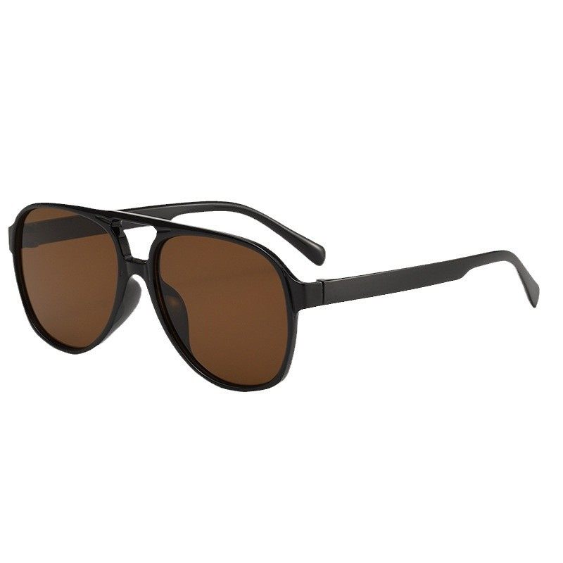 日系CherryKoko复古茶色墨镜男双梁大框方形太阳镜 INS黄色街拍