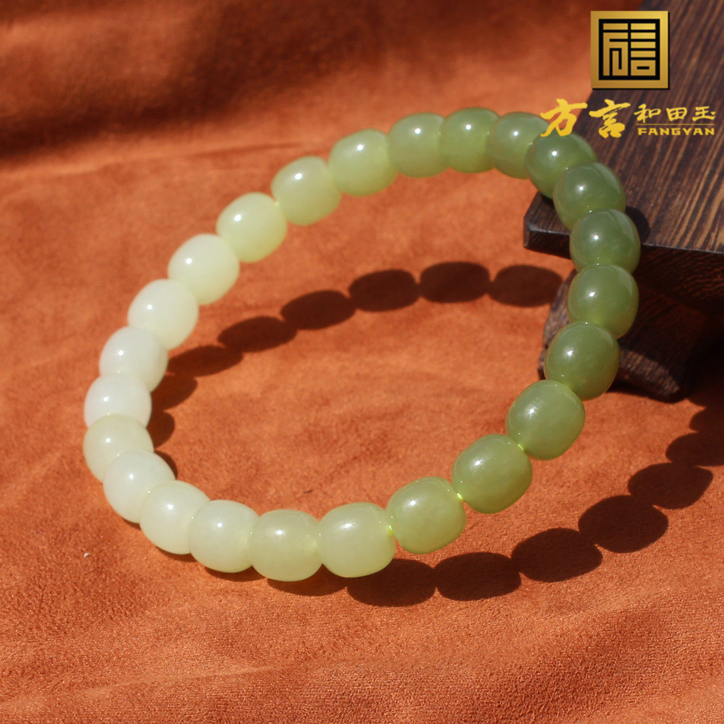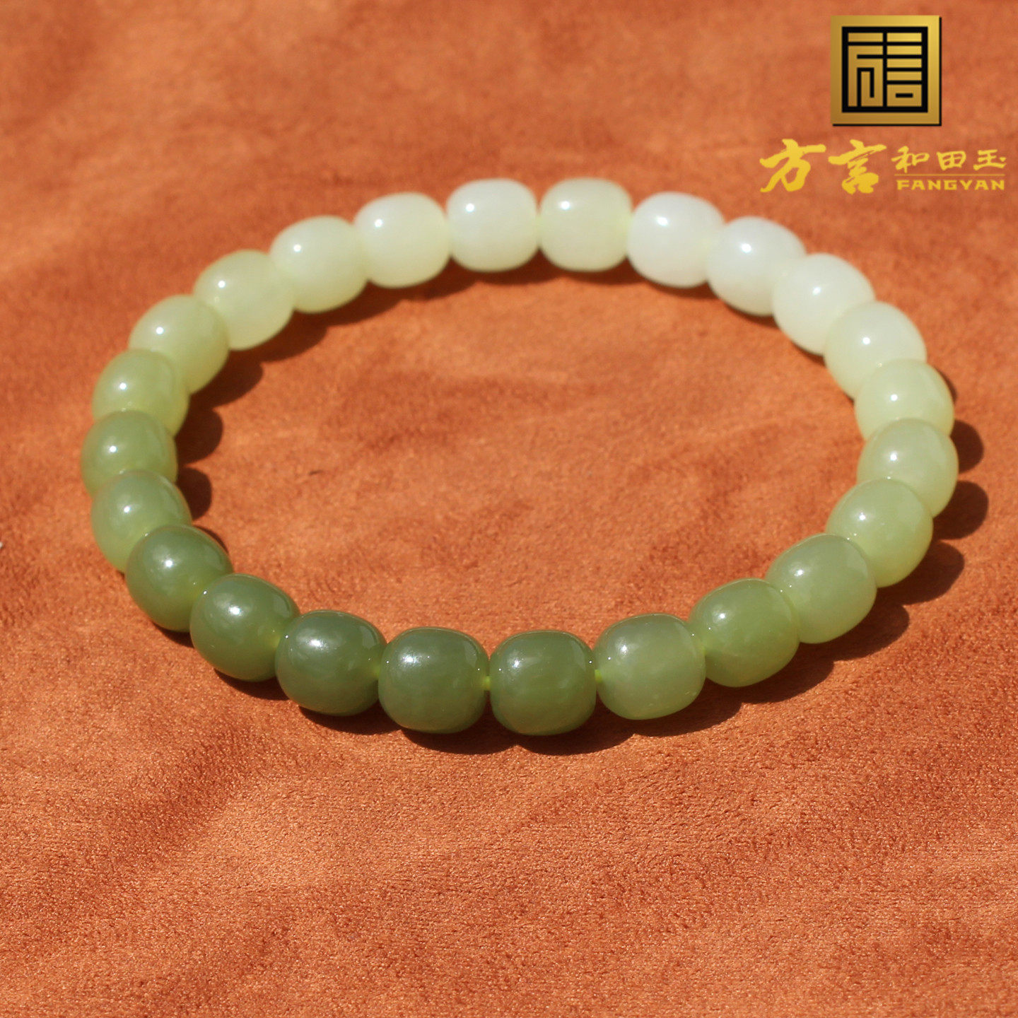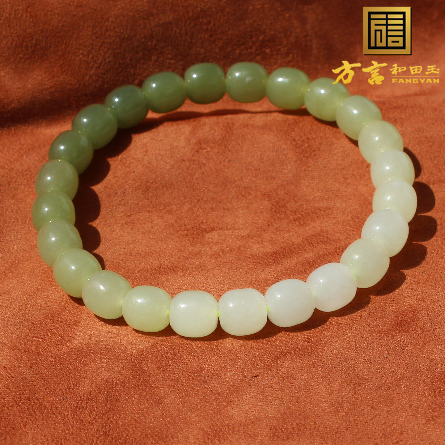 方言和田玉青海料冰底白玉渐变湖水绿卡8mm老型珠清新时尚手链A6