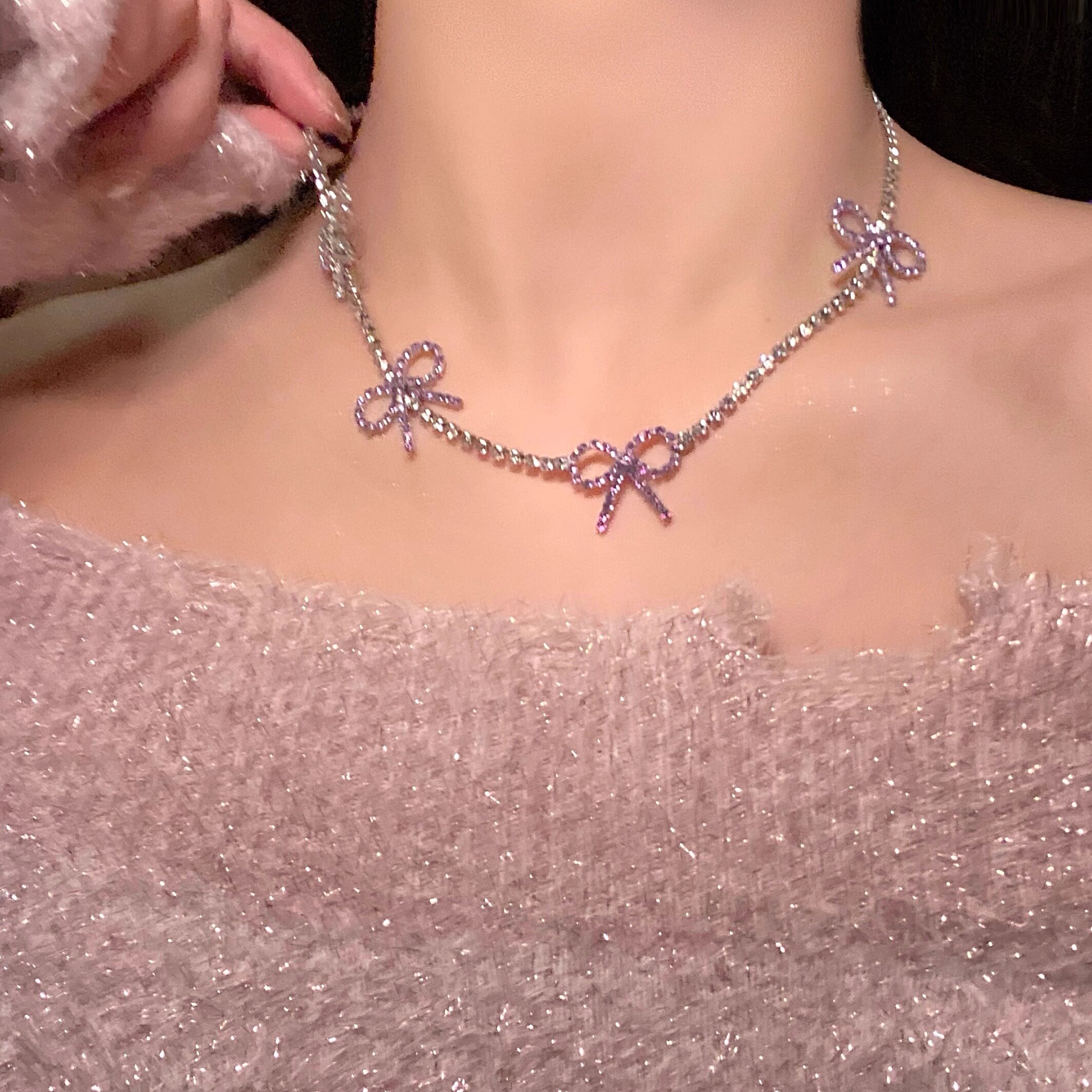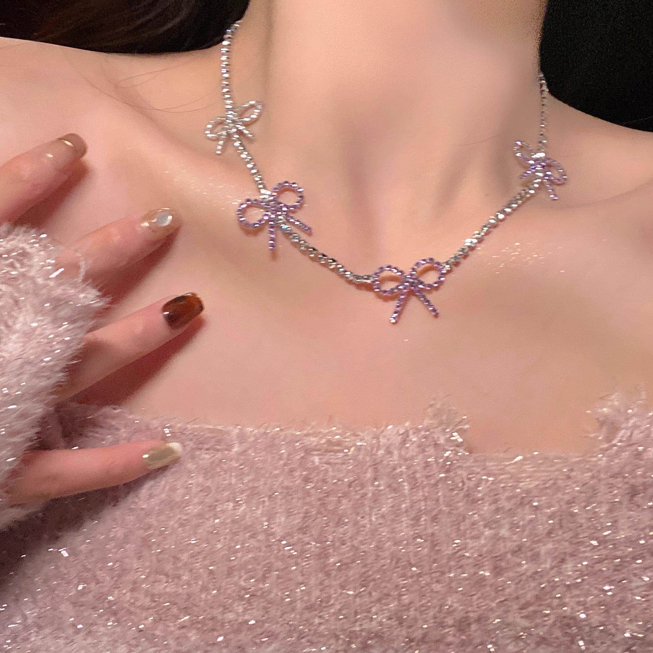 超仙淡紫色蝴蝶结项链女款2025新款配饰高级感轻奢小众颈链锁骨链