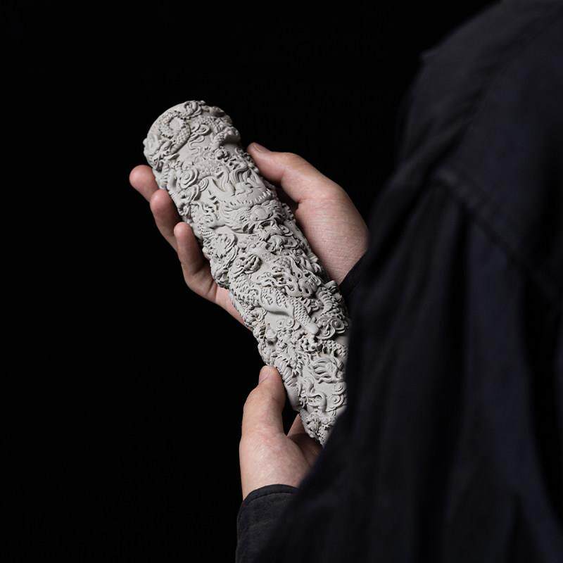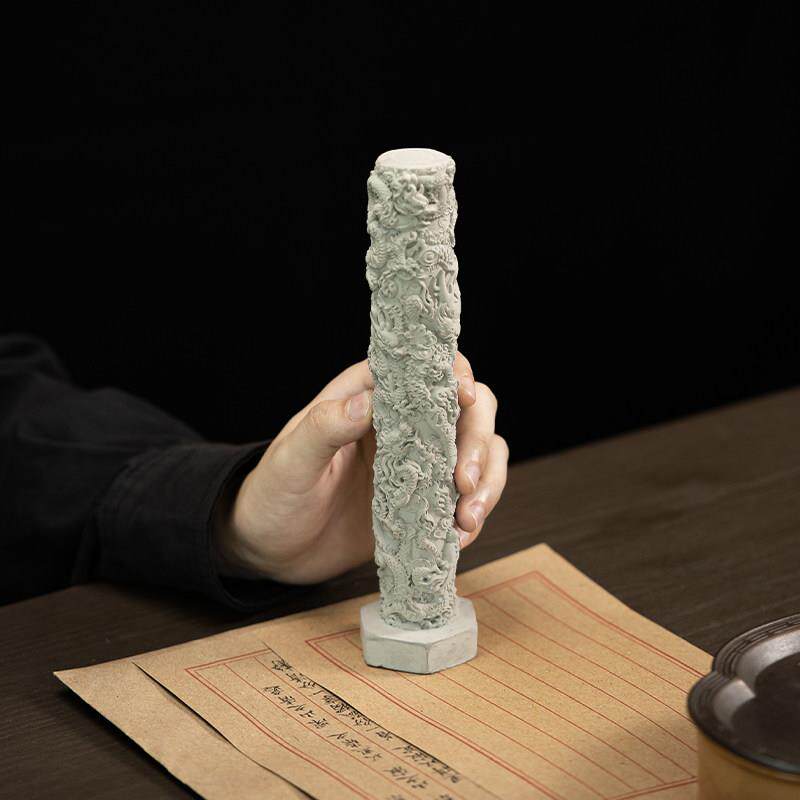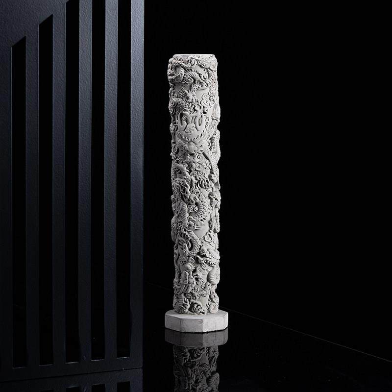 新中式创意水泥九龙柱鱼缸沉水造景布景摆件玄关客厅桌面装饰品