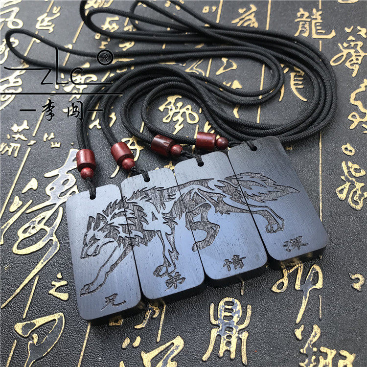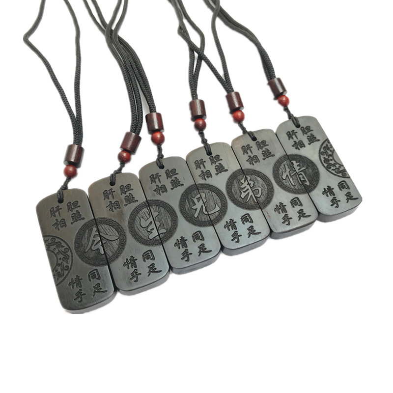 紫檀黑檀木质男生项链个性雕刻字抖音兄弟吊坠送哥们情义生日礼物
