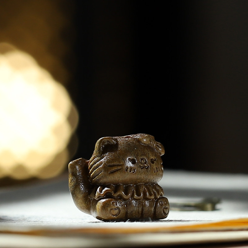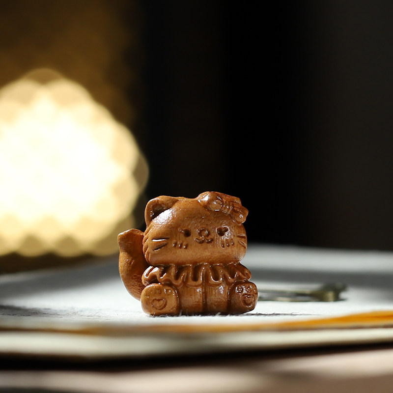 檀木雕蛋糕猫可爱卡通DIY手串散珠吊坠手机链钥匙包包配件材料