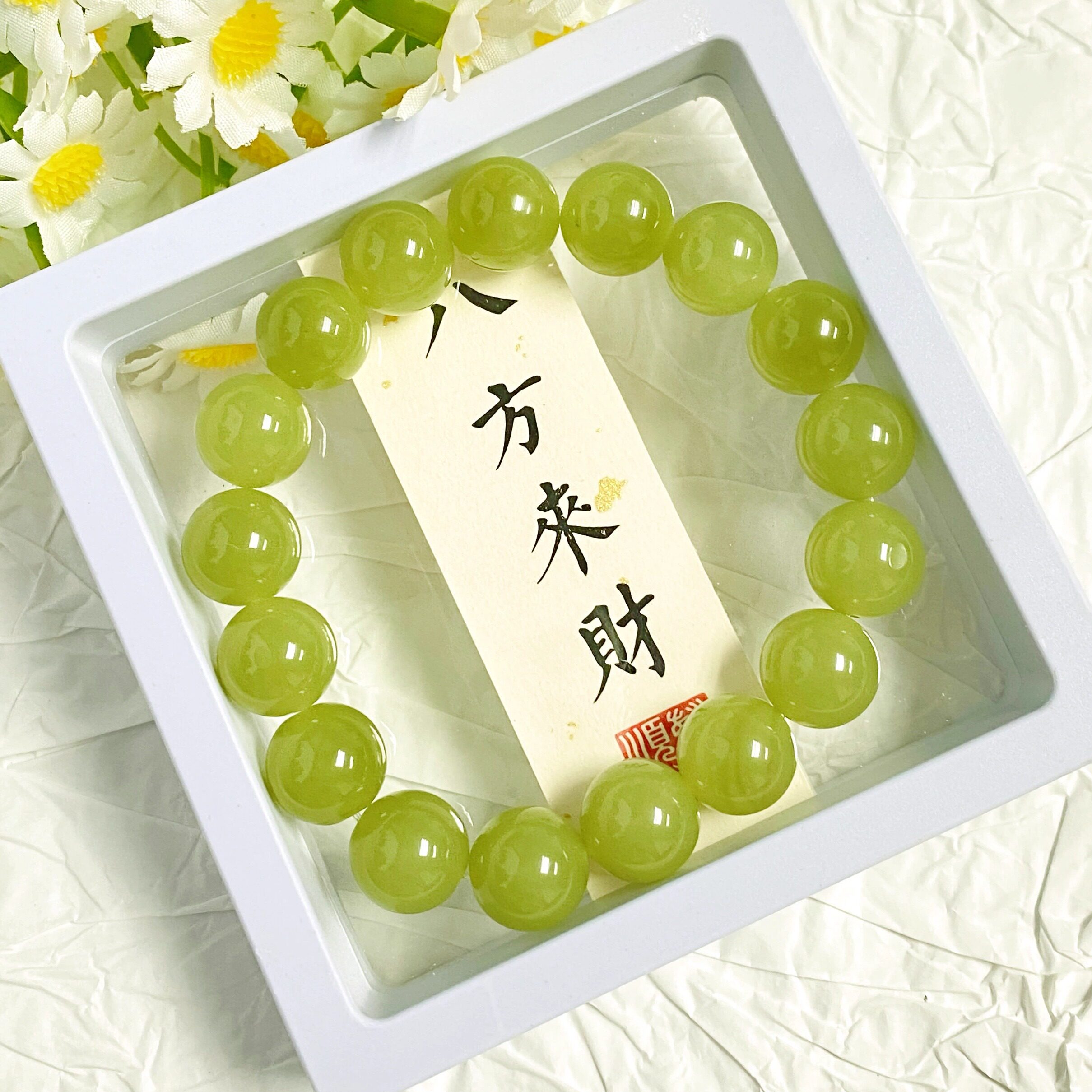 天然和田玉手串绿色手串黄玉手串女款和田玉石手串和田玉石手串