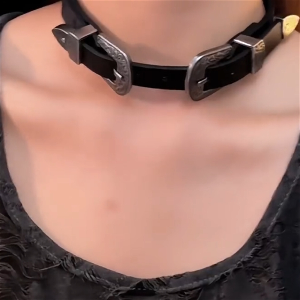 zoozmomo重工朋克choker颈环黑色双扣项圈皮质高级感辣妹y2k项链