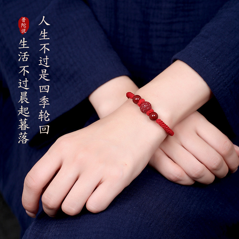 2026年天然朱砂手串回纹珠手工编织绳本命年红手绳男女款轮回手链