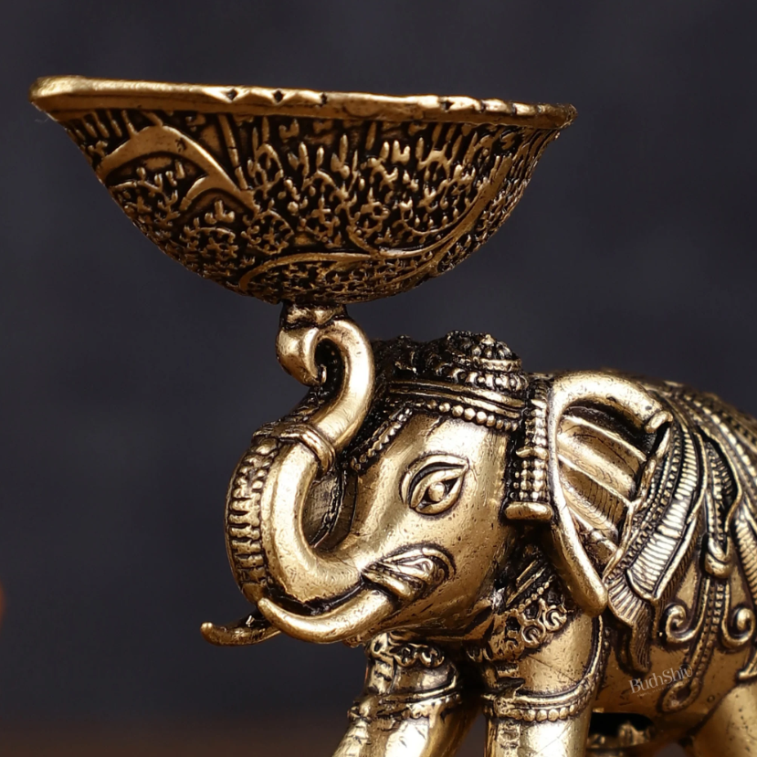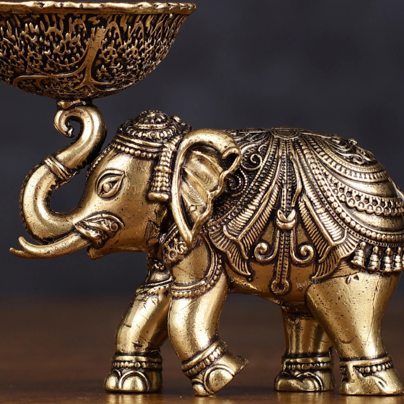 印度国际直邮黄铜精雕小象油灯diya 3 英寸家居装饰或神圣空间