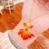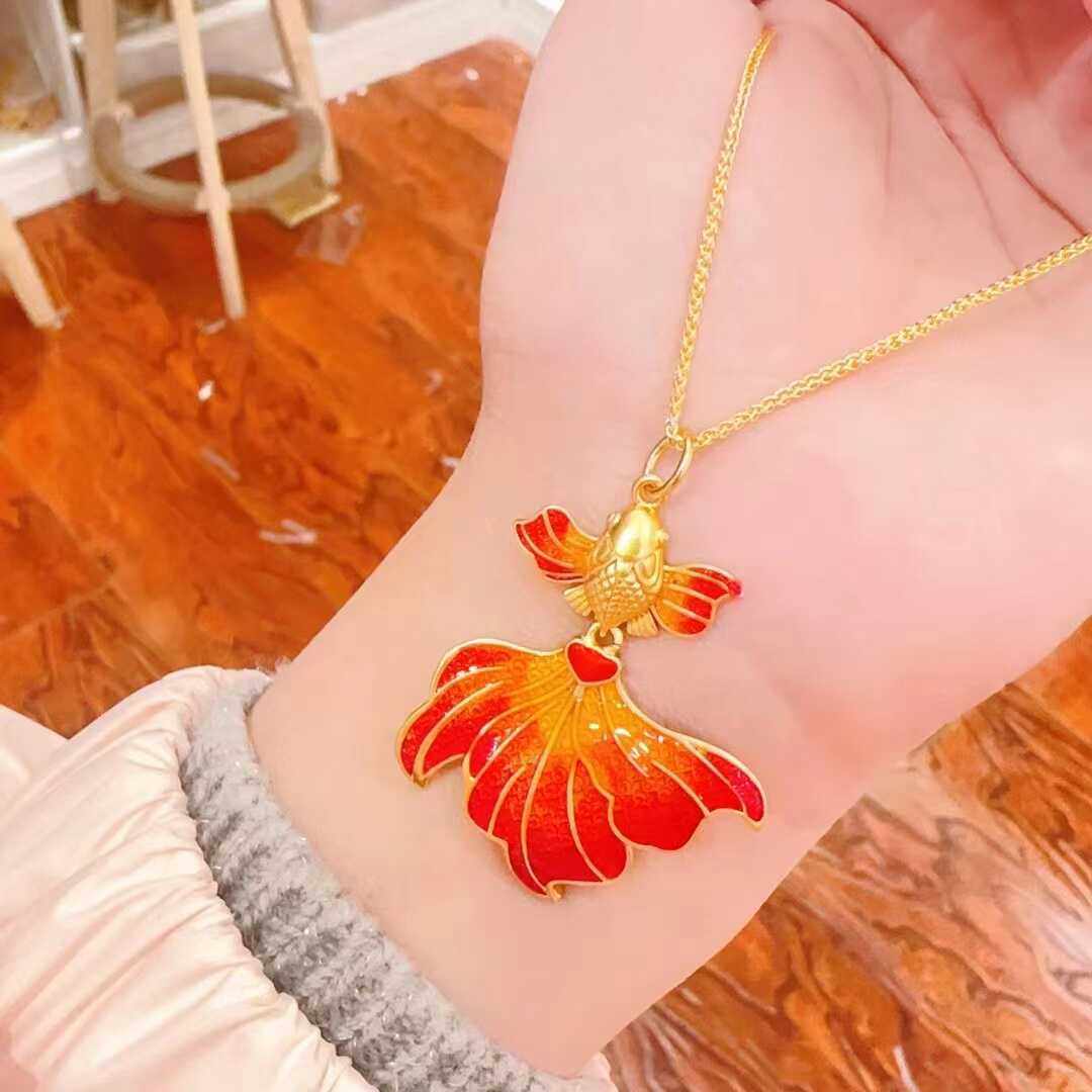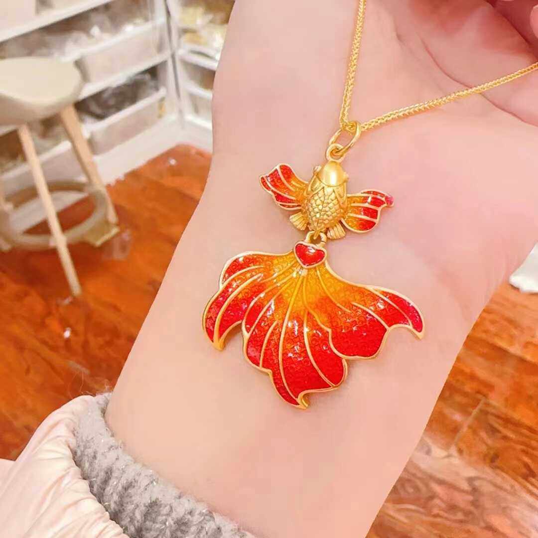 珐琅彩滴油红色锦鲤吊坠古法沙金小金鱼项链毛衣链女国潮婚庆送礼