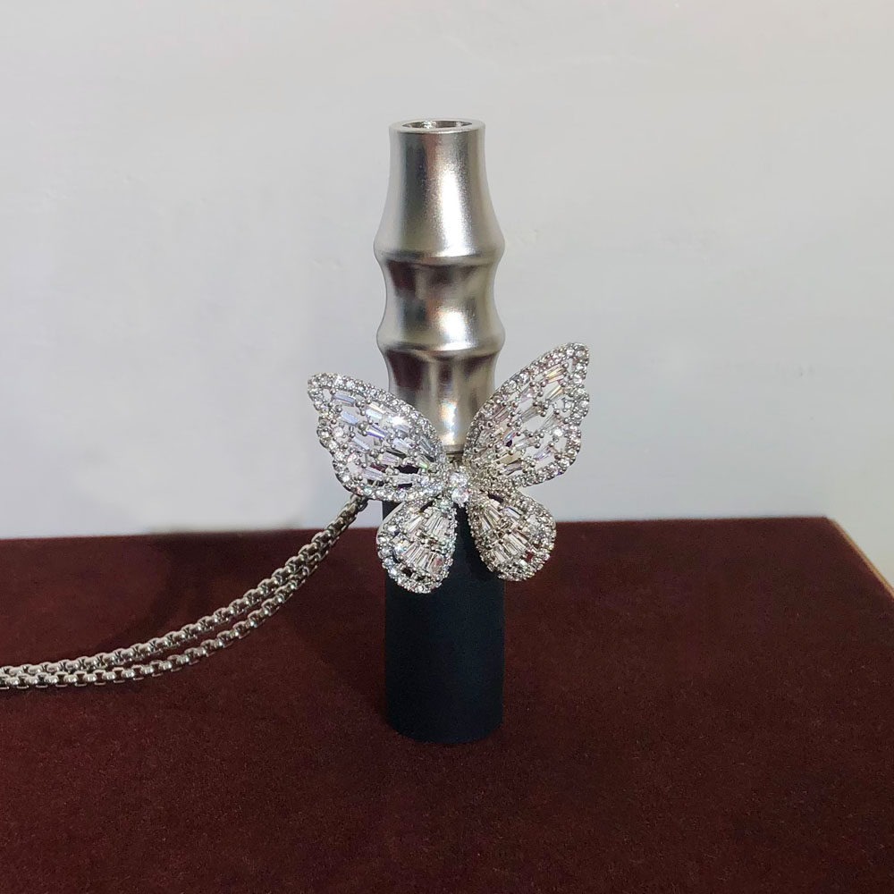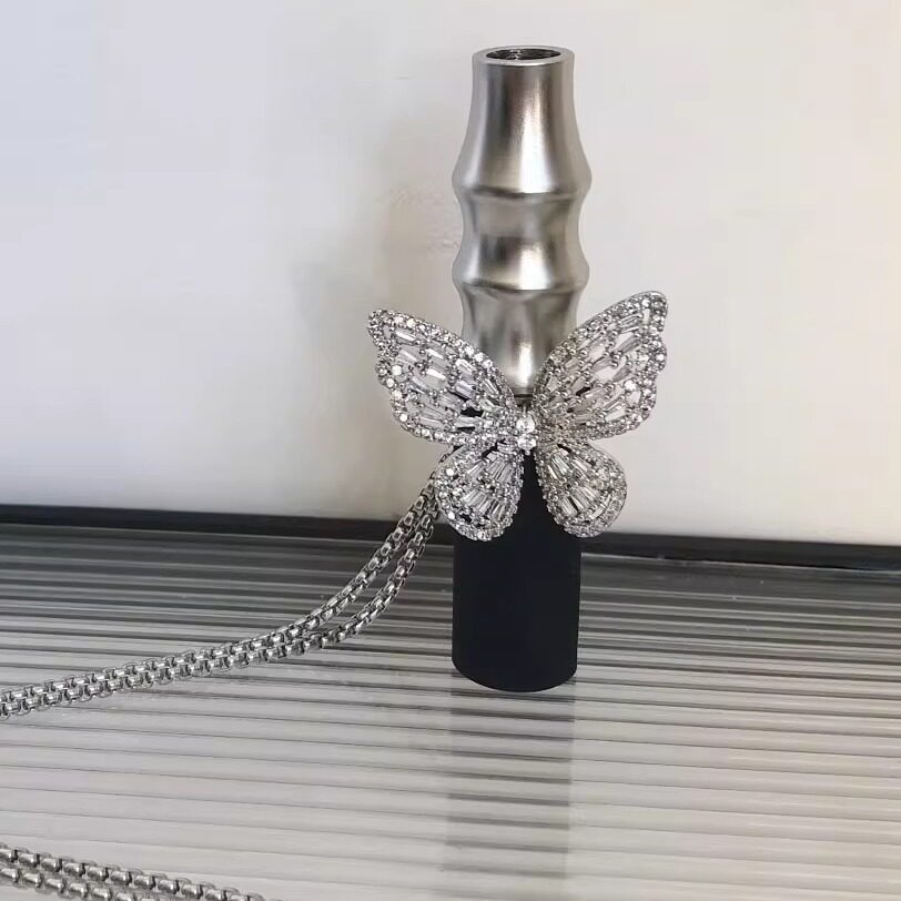 阿拉伯不锈钢微镶满钻蝴蝶烟嘴项链适用阿尔法赫烟嘴不锈钢毛衣链