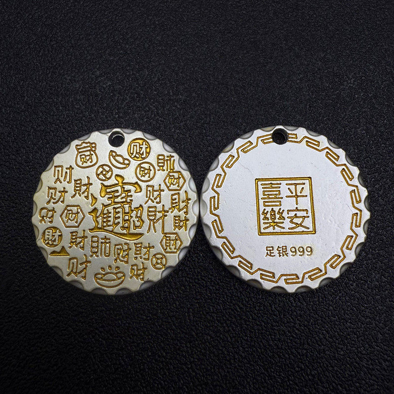 复古风古法描金百福圆牌吊坠新款热销吉祥云牌平安无事牌吊坠现货