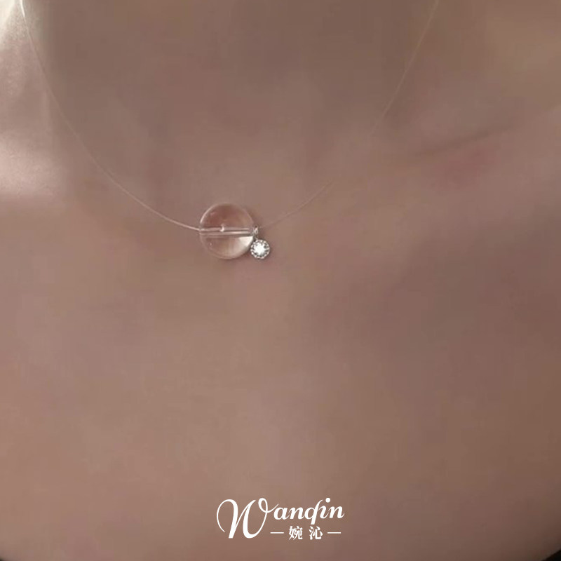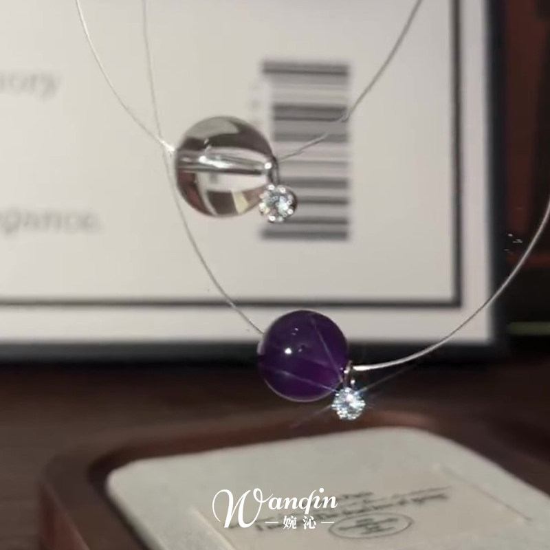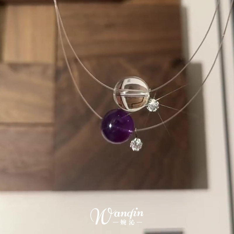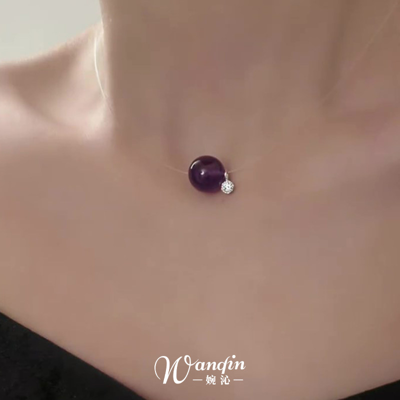 S925纯银紫色圆珠鱼线项链清冷感气质显白轻奢百搭精致高级锁骨链