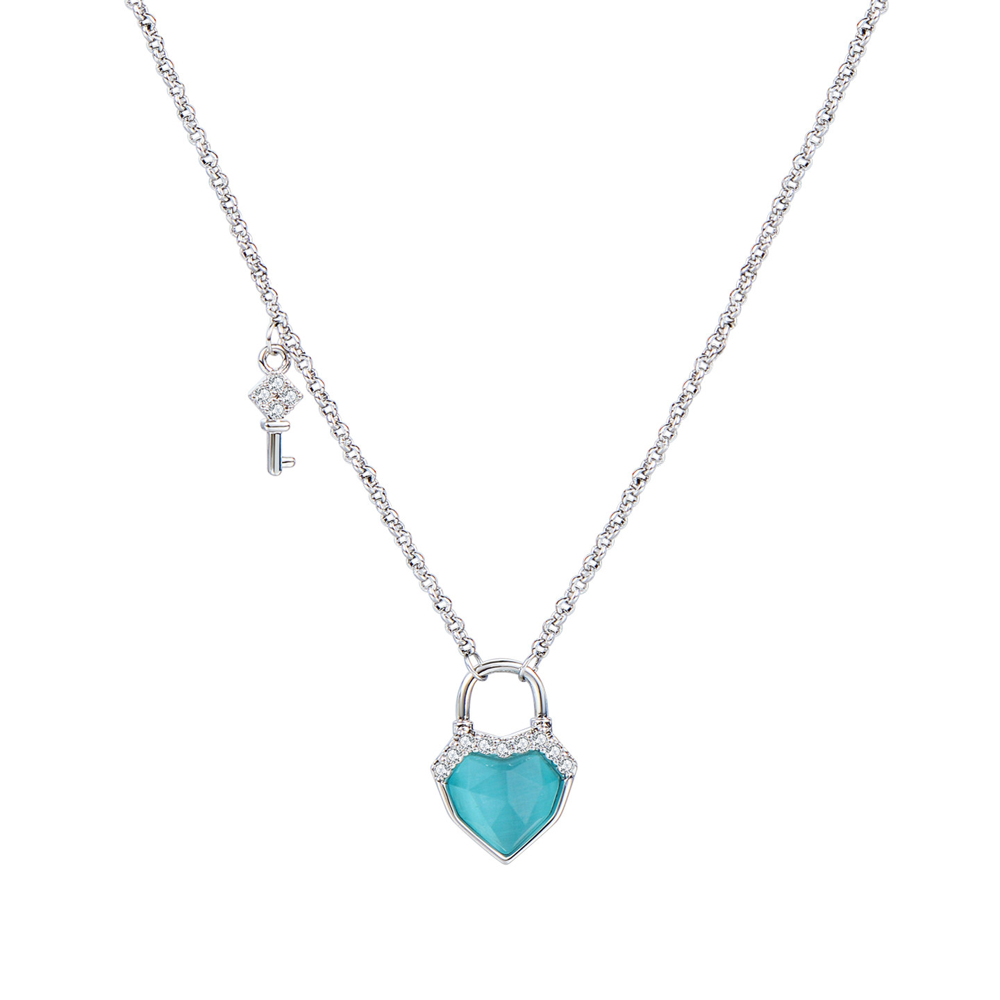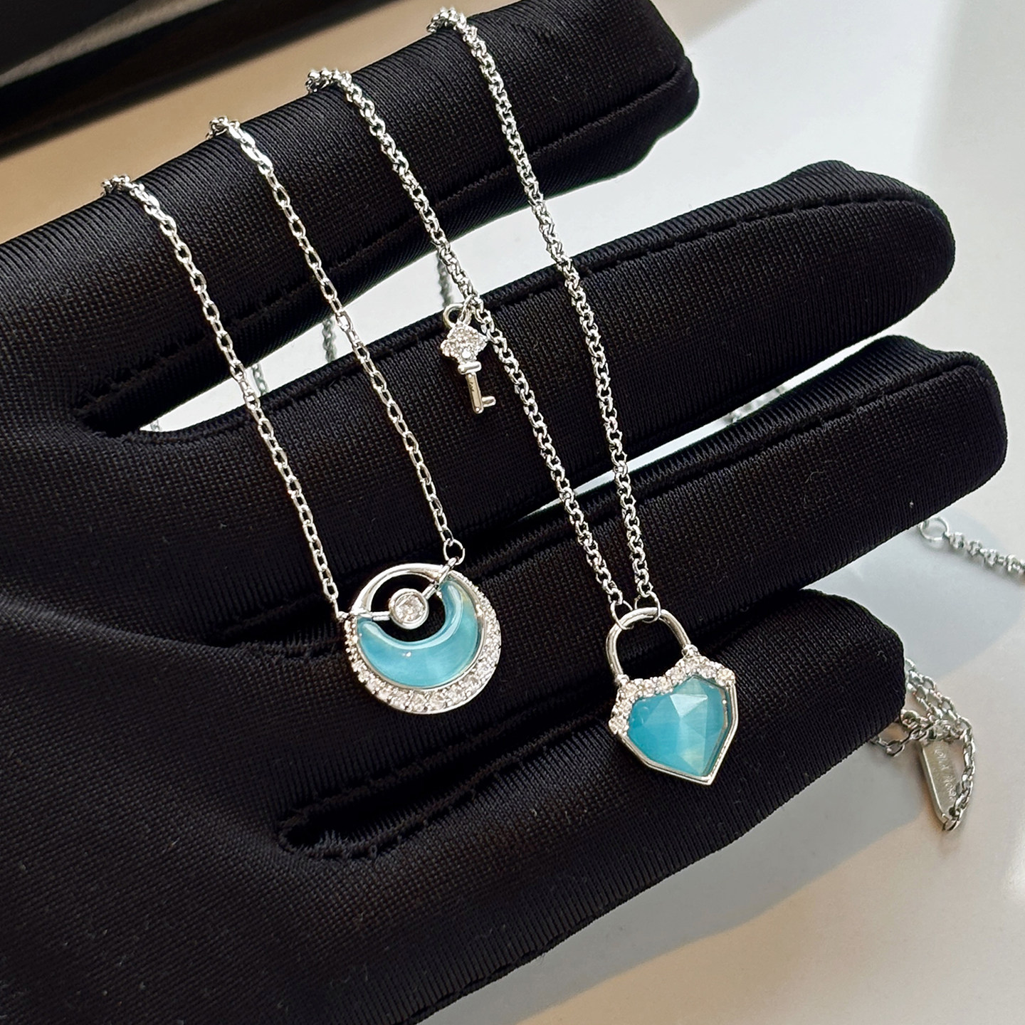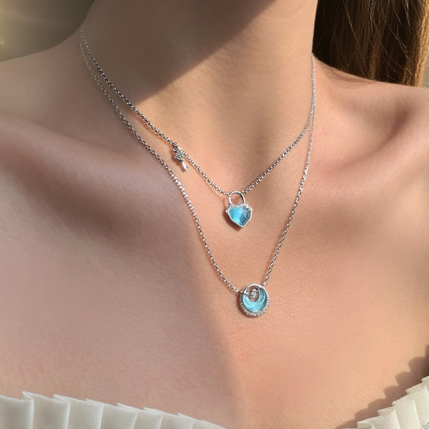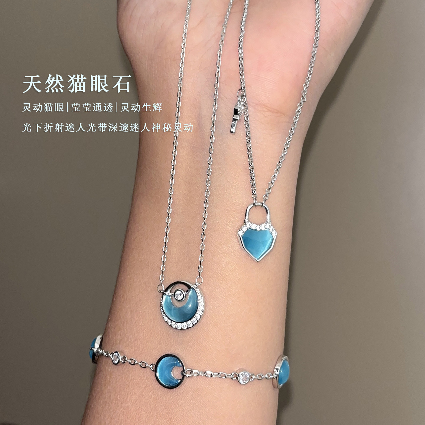 海洋之心!天然蓝色猫眼石爱心月亮吊坠项链女轻奢高级感锁骨颈链