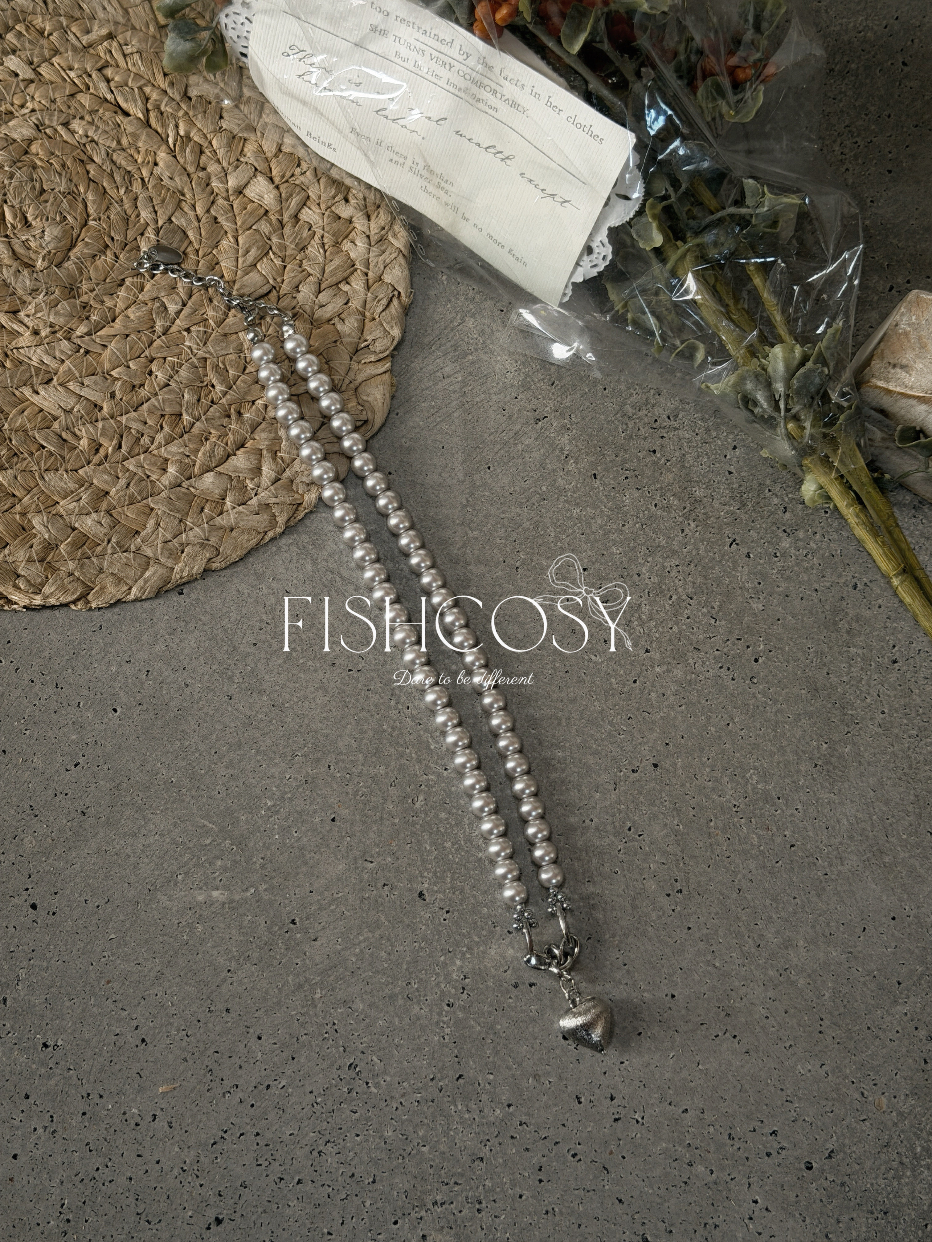 小众银灰色珠珠 爱心锁骨链 百搭项链韩国2026春夏新品夏威夷人鱼