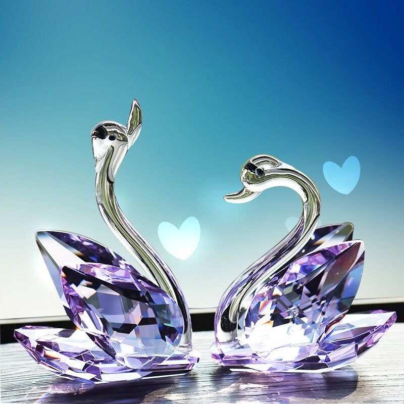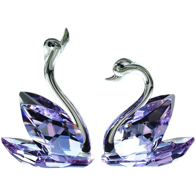 白色水晶天鹅粉色客厅动物摆件电视柜紫色桌面装饰简约结婚礼物